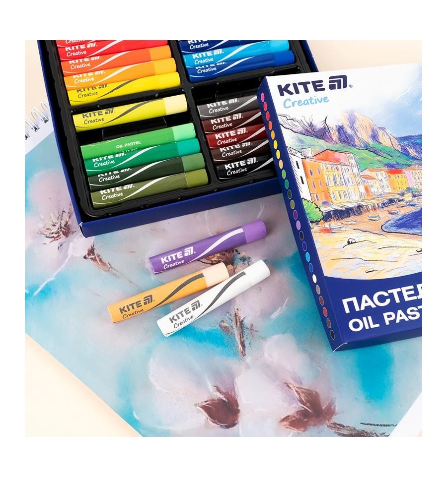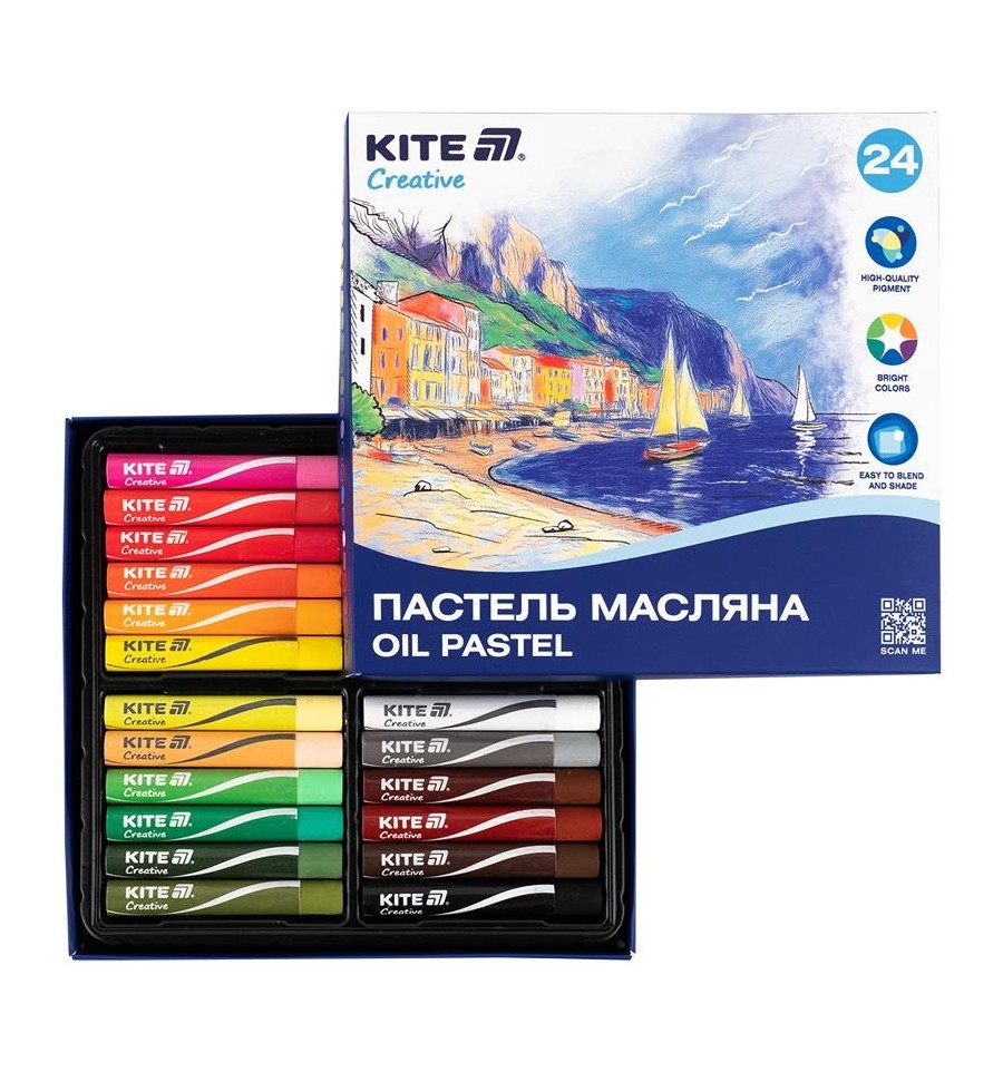 Масляная пастель Kite K-200-24 Creative, 24 цветов – мощный инструмент для тех, кто хочет развивать свое мастерство и наслаждаться процессом рисования. Она сочетает высокое качество с комфортом в использовании, подходит для обучения, художественных студий, творческой деятельности и домашнего хобби.Эта пастель создана для всех, кто стремится выйти за пределы привычных школьных рисунков. Возможность рисовать на разных основаниях, комбинировать цвета и применять разные техники делает ее универсальным и вдохновляющим выбором.Kite Creative – серия канцелярии, которая пробуждает художника в каждом.Это товары для творческих хобби, раскрывающих таланты. Они доставят радость и удовольствие как детям, так и взрослым. Вдохновляйтесь и творите вместе с нами!На товарах серии размещен QR-код, по которому можно найти множество интересных идей и креативных мастер-классов от Kite.Особенности:12 ярких цветов – богатая палитра для художественных экспериментов; круглая, диаметр 10 мм, длина 70 мм; мягкая однородная структура – пастель легко наносится на поверхность, приятная в использовании; качественные концентрированные пигменты – цвета насыщенные; легкое смешивание и наслоение – возможность создания новых оттенков и объемных переходов; подходит для разных поверхностей – бумага, акварельная бумага, картон, полотно, дерево; бумажная индивидуальная обертка – руки остаются чистыми; безопасная формула – не содержит вредных веществ, подходит для детей.