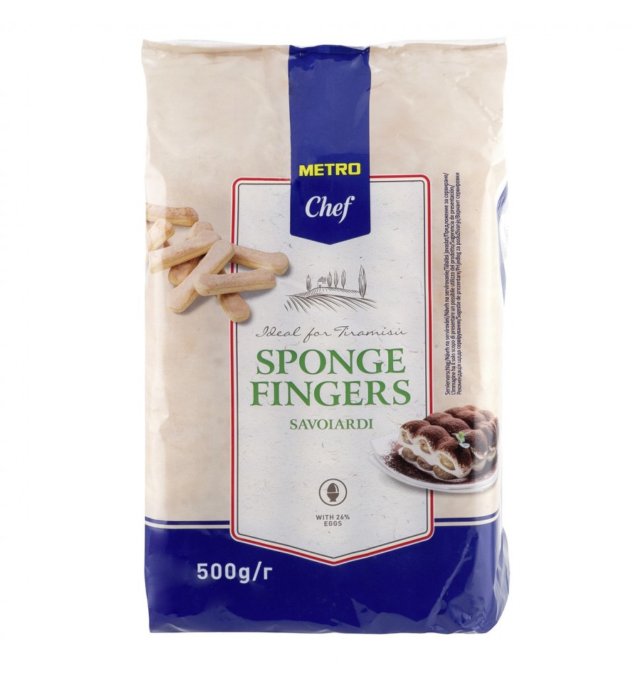 Печенье бисквитное Савоярди. СОСТАВ: мука пшеничная, сахар, яйца 26%, разрыхлитель (гидрокарбонат аммония, гидрокарбонат натрия), натуральные ароматизаторы, соль. Может содержать следы сои, горчицы, молока и орехов. Энергетическая ценность на 100г: 1603 кДж/378 ккал, жиры – 3,3 г, из них насыщены – 1,0 г, углеводы – 78,3 г, из них сахара – 49,4 г, белки – 7,9 г, соль – 0,40 г. Хранить. После открывания хранить в герметичном контейнере. Номер партии и дата "Лучше потребить до" указаны на упаковке. Страна происхождения: Италия. Изготовлено под заказ/Импортер: ООО "МЕТРО Кэш энд Кери Украина", 02140, Украина, г. Киев, просп. П. Григоренко, 43. По вопросам продукта обращайтесь по тел: 0 800 501 401 (бесплатно в пределах Украины). Производитель: Верона С.Р.Л., Виа Пиччинато 4, 37045 Леньяго (ВР), Италия.