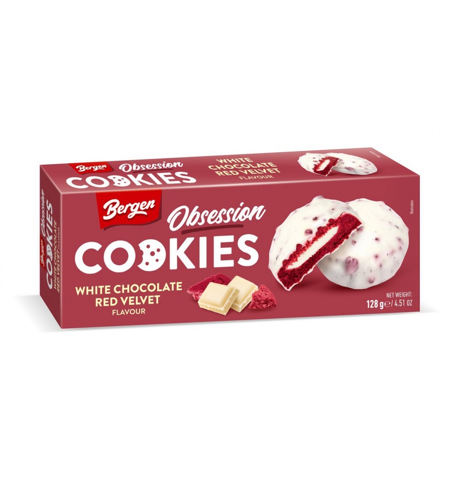 Печенье с молочно-сливочной начинкой со вкусом белого шоколада покрыто молочной глазурью с крошкой печенья Bergen. Состав: мука ПШЕНИЧНАЯ, молочная глазурь 27% [сахар, растительные масла (пальмовая, пальмоядровая), МОЛОКО цельное сухое 4,1%, МОЛОКО обезжиренное сухое 1,8%, эмульгатор: лецитины (СОЯ), ароматизаторы), начинка молочно-вершевые рапсовая), сухая сыворотка (из МОЛОКА), МОЛОКО сухое обезжиренное 1,8%, ароматизатор], растительные масла (пальмовое, рапсовое), сахар, печенье 2% (мука ПШЕНИЧНАЯ, растительные масла (пальмовая, рапсовая), сахар, разрыхлители, (загуститель: мальтодекстрин, краситель: концентрат красной свеклы, регуляторы кислотности: аскорбиновая кислота Е300, лимонная кислота Е330). жиры - 30 г, из них насыщены - 19 г; из них - сахара - 14 г; соль - 0,50 г. Изображение на упаковке «Метро Кэш энд Кери Украина», просп. П. Григоренко, 43, г. Киев, 02140, Украина, по вопросам продукта обращайтесь по тел.