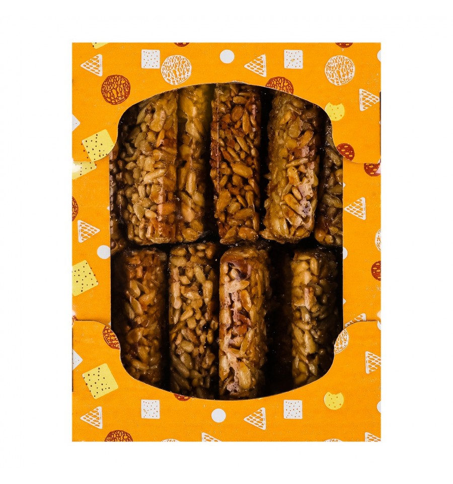 Сладости восточные Белфи Хомка 0.41кг. Состав: ядра семян подсолнечника, патока крахмальная, сахар белый, подсолнечное масло. Энергетическая ценность продукта: 2238кДж/100г, 535ккал/100г. Питательная (пищевая) ценность продукта: белки – 15.3г/100г, жиры – 41.6г/100г, насыщенные жиры – 5.3г/100г, углеводы – 26.5г/100г, из них сахара – 13.7г/100г. Условия хранения: хранить при температуре +18 (+/-3)ºC и относительной влажности воздуха не более 75%. Чистое, сухое, хорошо вентилируемое, без попадания прямых солнечных лучей, без постороннего запаха и вредителей место. Срок годности: 4 месяца. Страна изготовитель: Украина. Производитель и адрес производителя: ООО Белфи, ул. Полтавский шлях, 28/19, г. Харьков, Украина, 61012. Адрес производственных мощностей: ул. Василия Стуса, 11, г. Харьков, Украина, 61054. Масса нетто: 0.38кг.