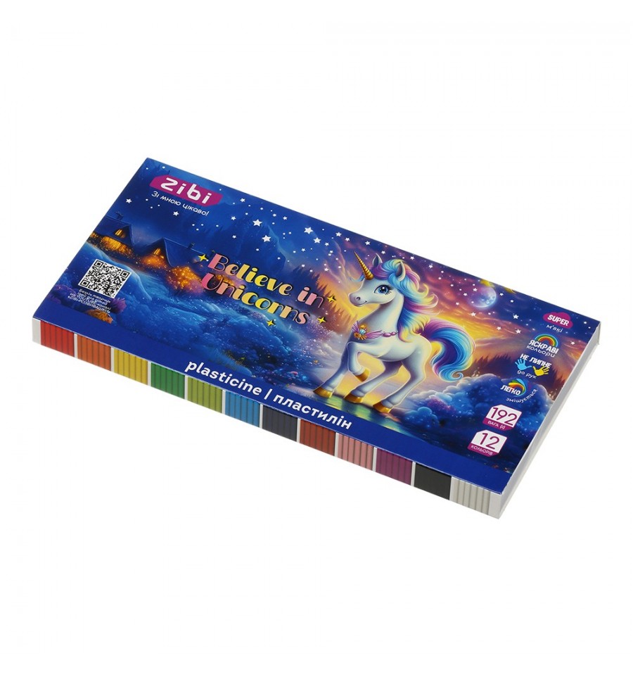 Набор пластилина серии UNICORN от ZiBi – для моделирования и лепки. Подходит для занятий на дому, в школе, садике, а также на различных кружках и мастер-классах, прекрасно развивает творческую фантазию и моторику у детей. 12 насыщенных чистых цветов, бруски прямоугольной формы масса нетто: 192 г не липнет и не красит руки, не оставляет цветные пятна на поверхности мягкая и эластичная текстура, легко разминается, не засыхает в процессе хранения хорошо держит форму в изделиях, детали лепки легко соединяются между собой изготовлен по классической рецептуре, не содержит аллергенов (глютена) легко смешивается между собой, образуя множество новых оттенков и цветов – схема образования новых цветов на коробке. QR-код со ссылкой на мастер-классы по лепке от ZiBi на каждой коробке упаковка: коробка-рукав из плотного ламинированного картона, картонная подложка с перегородками для брусков пластилина внутри.