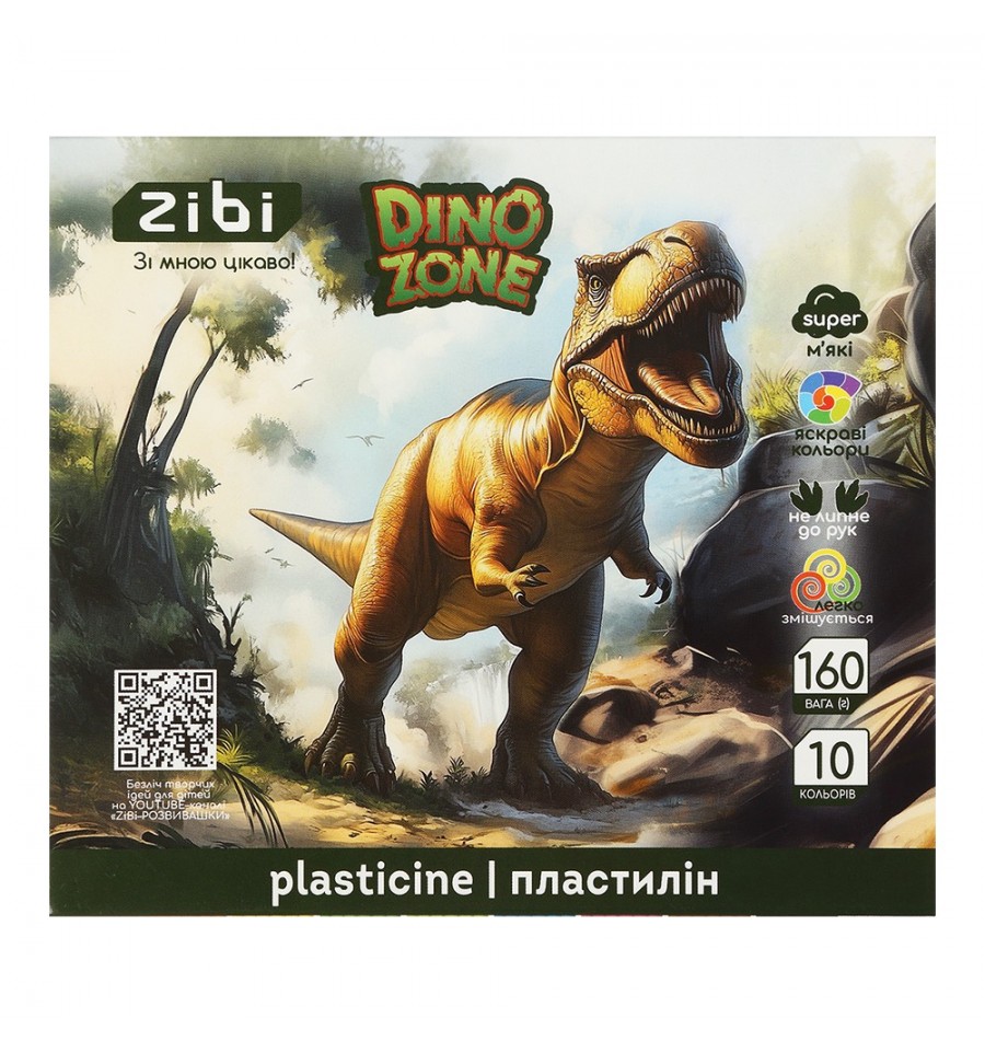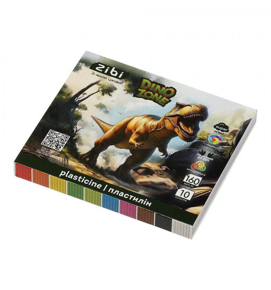 Набор пластилина серии DINO от ZiBi – для моделирования и лепки. Подходит для занятий на дому, в школе, садике, а также на различных кружках и мастер-классах, прекрасно развивает творческую фантазию и моторику у детей. 10 насыщенных чистых цветов, бруски прямоугольной формы масса нетто: 160 г не липнет и не красит руки, не оставляет цветные пятна на поверхности мягкая и эластичная текстура, легко разминается, не засыхает в процессе хранения хорошо держит форму в изделиях, детали лепки легко соединяются между собой изготовлен по классической рецептуре, не содержит аллергенов (глютена) легко смешивается между собой, образуя множество новых оттенков и цветов – схема образования новых цветов на коробке. QR-код со ссылкой на мастер-классы по лепке от ZiBi на каждой коробке упаковка: коробка-рукав из плотного ламинированного картона, картонная подложка с перегородками для брусков пластилина внутри.