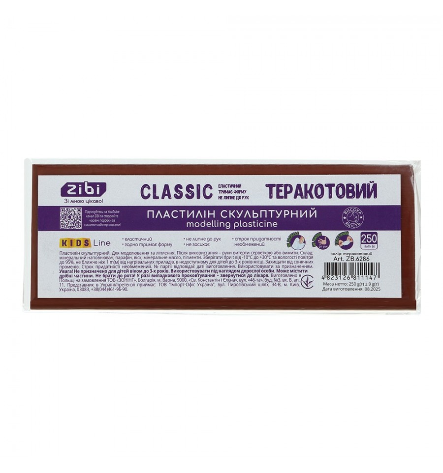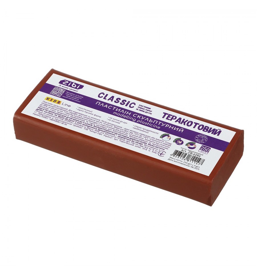 Скульптурный пластилин серии CLASSIC от ZiBi – для модельных работ и скульптурных миниатюр. Имеет тщательно подобранную сбалансированную формулу из разных восков и наполнителей, в процессе работы пластилин сохраняет свою плотность и пластичность. Подходит для моделирования и лепки мастерам, начинающим и любителям. Может использоваться на различных кружках и мастер-классах, в студиях по художественной лепке, прекрасно развивает творческую фантазию и моторику.масса нетто: 250 г (брусок прямоугольной формы) чистый однородный натуральный терракотовый цвет не липнет и не красит руки, не оставляет пятен на поверхности эластичная текстура, превосходная пластичность обеспечивают точность мелких деталей, ровные срезы. не засыхает в процессе хранения не образует бликов с поверхности хорошо держит форму в изделиях изготовлен в Европейском Союзе, отвечает всем нормам безопасности игрушек для детей как Украины, так и Европы.