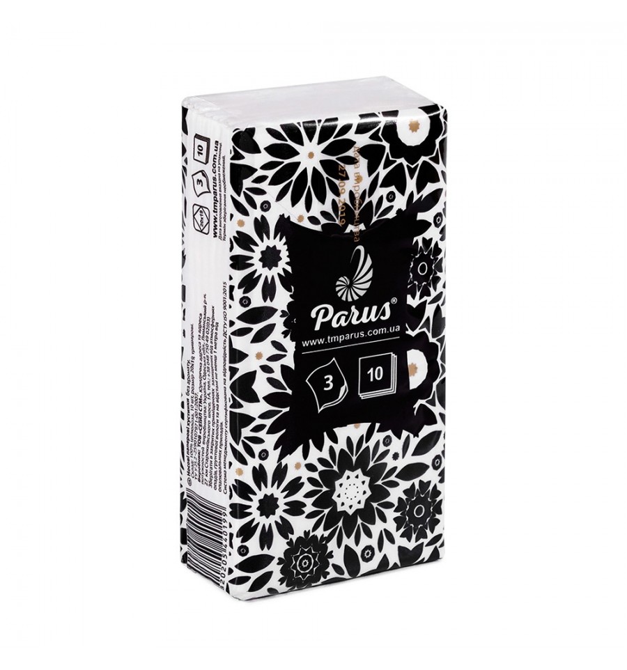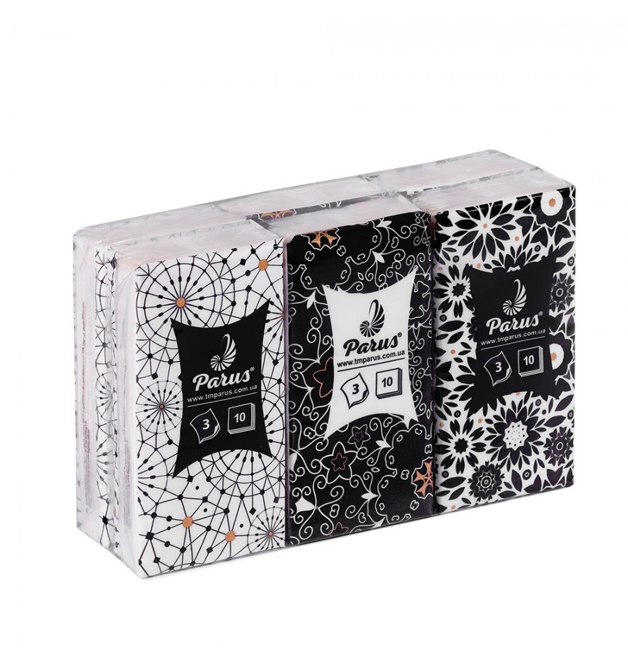 Платки бумажные 3-х слой., 10 шт, белые, не аром., Parus