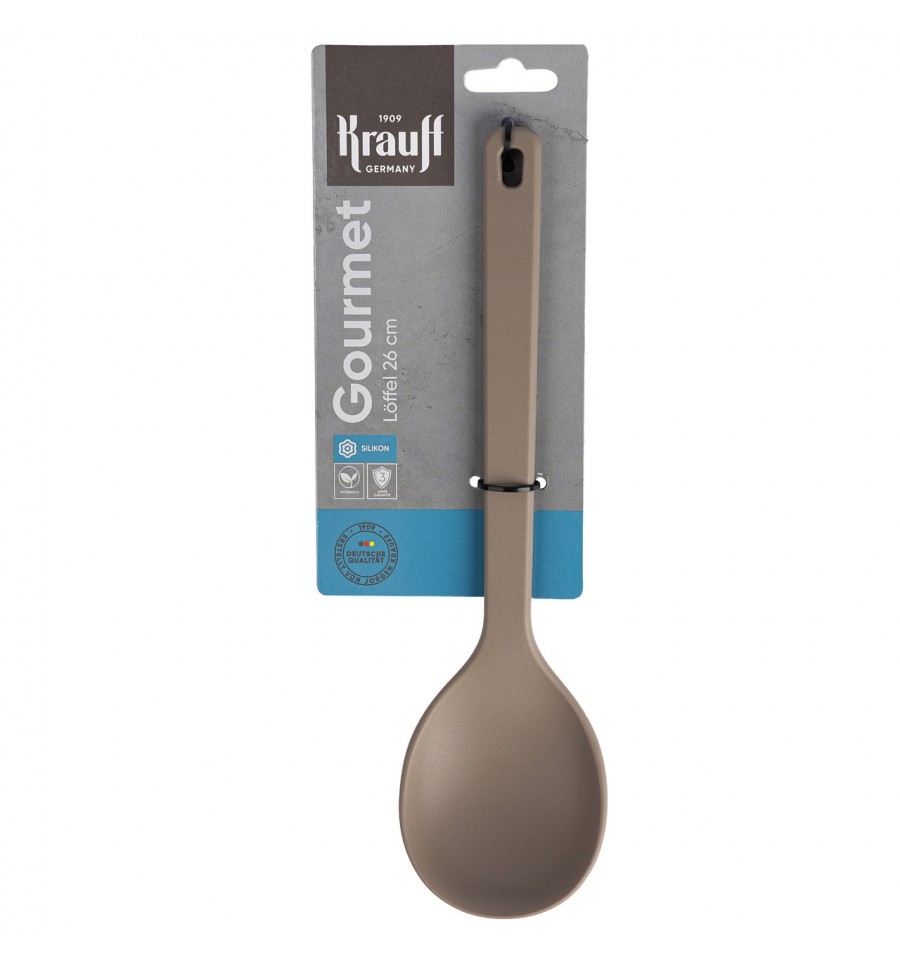 Ложка Krauff кухонная силиконовая 26см. Соответствует требованиям действующего санитарного законодательства Украины. Не требует обязательной сертификации. Не содержит вредных веществ. Предназначена для использования по назначению в обиходе. Не использовать абразивные моющие средства. Материал: силикон. Срок годности: 9999 сут. Условия хранения: не требует особых условий хранения. Производитель: Krauff GmbH. Адрес производителя: Нинбо Голден Элефан Китченвар Ко, ЛТД, Циувон, Лонгшан таун, Сикси Сити, Нинбо, Жейжианг, КНР. Страна: Китай. Масса нетто: 69 гр.