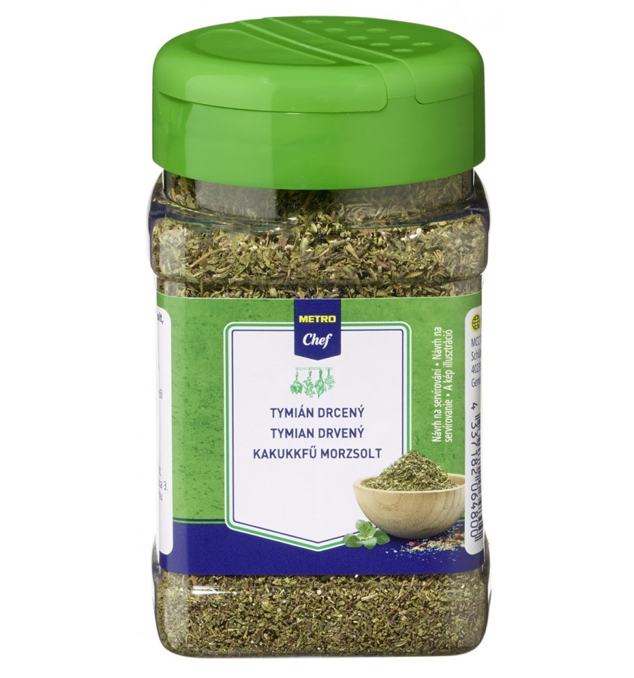 Тимьян измельченный, сушеный TM "METRO Chef". Может содержать следы глютена, яиц, сои, сельдерея, кунжута, молока (лактоза) и горчицы. Хранить в сухом, защищенном от солнечного света месте. Производитель: Kотании ГмбХ, А-2120, Волькерсдорф, a/c 66, Австрия. Страна происхождения: Польша. Импортер: ООО "Метро Кэш энд Кери Украина", 02140, Украина, г. Киев, Проспект П. Григоренко, 43. По вопросам продукта обращайтесь по тел. горячей линии импортера: 0800501401 (бесплатно в пределах Украины). Номер партии (L) и дата "Лучше потребить до" указаны на упаковке. Масса нетто: 60 г(г)