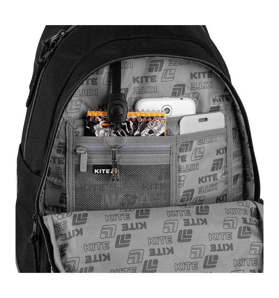 Рюкзак Kite K25-2575M-2 – удобный и функциональный, со стильным дизайном. Он идеально сочетает компактность, емкость и легкость. Безупречный школьный рюкзак, который каждый день будет дарить чувство комфорта и свободы.Модель рекомендована для школьников от 9-12 лет. Рост от 130-145 см.Материалы и фурнитура прошли испытания на прочность и износостойкость. Ткань не выгорает, долго сохраняет первоначальный вид. Молнии – качественные и надежные, работают плавно.Подарок к рюкзаку – модный шнурок для телефона.Трендовый дизайн будет даровать воодушевление в покорении новых обучающих вершин.Бренд Kite — признанный лидер в мире рюкзаков, ежегодно получающий самые престижные награды: Выбор года, Выбор страны, Украинская народная премия. Потребители и эксперты рынка выбирают Kite за безупречное качество, стиль, инновационные решения и эргономичный дизайн.Рюкзак снаружи: ортопедическая дышащая спинка Air Comfort – разработана для подростков среднего и старшего школьного возраста, деликатно повторяет естественные изгибы спины и снижает нагрузку; широкие S-образные лямки комфортно ложатся на плечи, не давят и не натирают; съемный нагрудный ремень фиксирует лямки, способствует правильному распределению веса; передний карман на молнии; 2 боковых кармана для термоса или бутылочки с водой; уплотненная ручка-петля; текстильная петля для подвешивания рюкзака на крючок; усиленное дно для стойкости и практичности; высококачественная фурнитура – надежные молнии с удобными пуллерами-подвесками; светоотражающие элементы – чтобы ребенок был заметен на дороге в темное время суток; декор: вставки из вельвета, голографическая нашивка с печатью, объемная брелок-подвеска в форме сердца с пластиковой цепочкой. Рюкзак внутри: 2 вместительных отделения; внутренние разделители для книг и тетрадей с фиксирующей резинкой – чтобы в рюкзаке был идеальный порядок; карман для планшета с плюшем, защищающим экран гаджета; органайзер для канцелярских мелочей; карман для телефона с плюшевой подкладкой; съемная ключница; прочная брендированная подкладка; иконки внутренней навигации, подсказывающие назначение каждого кармашка.