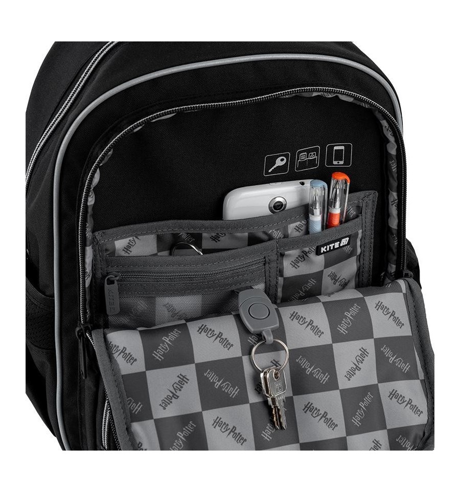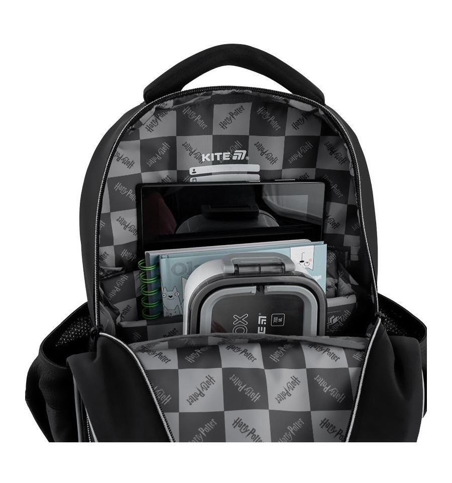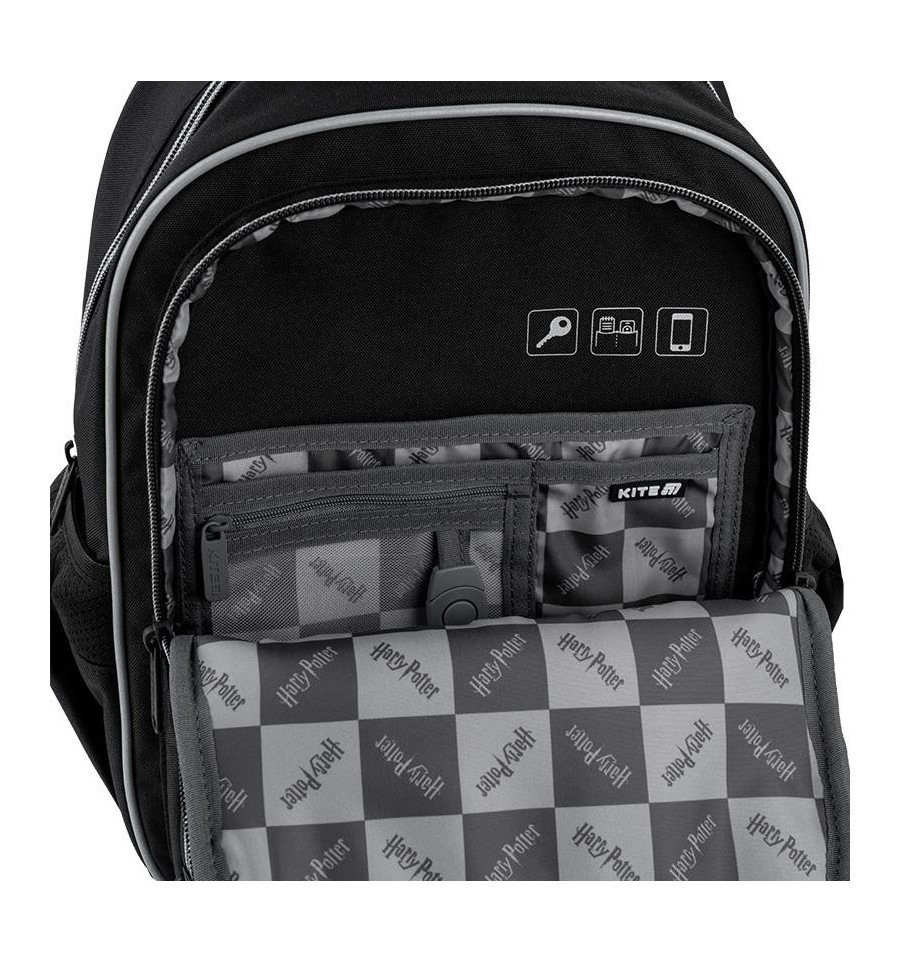 Школьный рюкзак Kite HP25-773M – мягкая ортопедическая модель с максимальным количеством карманов. Этот рюкзак позаботится о том, чтобы обучение было комфортным.Стильный дизайн дарит вдохновение и уверенность. Продуманная организация места с удобными карманами и отделениями поможет всегда поддерживать содержимое рюкзака в порядке. В объемный передний карман можно положить пенал или ланчбокс, чтобы внутри рюкзака было больше свободного места для школьной канцелярии.Мягкие рюкзаки имеют облегченный вес и практически не ощущаются на плечах, что очень важно для рюкзака, который ребенок будет носить в школу каждый день.Ортопедическая конструкция обеспечивает максимальный комфорт для ребенка и способствует поддержанию правильной осанки. Модель рекомендована для детей 6-10 лет и ростом 130 – 145 см.Трендовая отделка в лицензии Harry Potter дарит вдохновение для активного обучения.Фишка этого рюкзака – нашивка с липучкой, позволяющая легко менять его дизайн под настроение. Бейджи крепятся на липучку, позволяющую быстро кастомизировать рюкзак в любом стиле.У Kite есть огромный ассортимент разных бейджей, трендовых подвесок и брелоков. Хочешь новый образ? Просто меняй аксессуары: ужух и рюкзак смотрится совсем иначе! Будь оригинальным: создавай свой уникальный стиль каждый день!Приятный бонус от Kite. Вместе с рюкзаком вы получаете стильный кошелек с карабином, который можно носить как пристегнутым к рюкзаку, так и по отдельности, как самостоятельный аксессуар.Бренд Kite — признанный лидер в мире рюкзаков, ежегодно получающий самые престижные награды: Выбор года, Выбор страны, Украинская народная премия. Потребители и эксперты рынка выбирают Kite за безупречное качество, стиль, инновационные решения и эргономичный дизайн.Рюкзак снаружи: запатентованная ортопедическая спинка Ergo Kids с мягкими дышащими подушечками повторяет естественные изгибы спины; комфортные дышащие лямки S-образной формы снижают нагрузку на плечи; съемный нагрудный ремень фиксирует лямки и равномерно распределяет вес; большой фронтальный карман на молнии; скрытый карман на спинке - для ценных мелочей; 2 боковых кармана на резинке для бутылочки с водой или небольшого термоса; мягкая уплотненная ручка-переноска; текстильная ручка-петля; уплотненное прорезиненное легко моющееся PU-дно; световозвращающие элементы с 4 сторон – чтобы ребенка было видно в темное время суток; надежная фурнитура – ​​молнии работают плавно, пуллеры – с приятным на ощупь резиновым напылением; декор: объемная светоотражающая печать, нашивка с липучкой, съемные светоотражающие бейджи на липучке, брелок-подвеска из тесьмы на металлическом карабине. Рюкзак внутри: 2 отделения – вместительные и просторные; карман для планшета с мягким плюшем внутри – для бережного хранения гаджета; карман для телефона с плюшевой вставкой для защиты экрана; внутренняя система разделителей с фиксирующей резинкой – для тетрадей и книг; удобная съемная ключница; поле для персональных данных владельца; иконки внутренней навигации, подсказывающие назначение каждого кармана; крепкая лицензионная подложка. К этому рюкзаку будут идеально подходить пенал HP25-599 и сумка для обуви HP25-600M.
