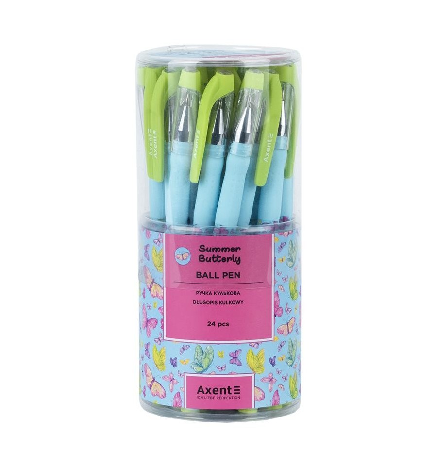 Ручка шариковая Axent AB1049-41-A Summer Butterly синяя – яркая, качественная и удобная. Она отлично пишет, комфортно ложится в руку и завораживает неповторимым дизайном.Швейцарский пишущий узел Premec диаметром 0,5 мм обеспечивает равномерную подачу чернил: ручка пишет легко и плавно, не требуя сильного нажатия.Благодаря качественным немецким чернилам Documental, линия получается четкая и насыщенная. Ручка не мажется и не оставляет пробелов. Благодаря экономному расходу чернил, ручка будет долго радовать вас безупречной функциональностью.Прорезиненный корпус имеет приятную на ощупь матовую текстуру, благодаря чему ручка не скользит во время письма.Стержень имеет длину 136 мм, пишущий узел – 0,5 мм. Длина написания – 1100 м.Стильный дизайн поднимет настроение и подарит море положительных эмоций.