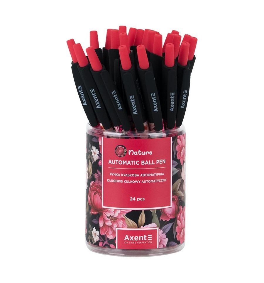 Ручка шариковая автоматическая Axent AB1090-38-A Nature синяя – яркая, качественная и удобная. Она отлично пишет, комфортно ложится в руку и завораживает неповторимым дизайном.Швейцарский пишущий узел Premec диаметром 0,5 мм обеспечивает равномерную подачу чернил: ручка пишет легко и плавно, не требуя сильного нажатия.Благодаря качественным немецким чернилам Documental, линия получается четкая и насыщенная. Ручка не мажется и не оставляет пробелов. Благодаря экономному расходу чернил, ручка будет долго радовать вас безупречной функциональностью.Прорезиненный корпус имеет приятную на ощупь матовую текстуру, благодаря чему ручка не скользит во время письма.Стержень имеет длину 107 мм, пишущий узел – 0,5 мм. Длина написания – 800 м.Стильный дизайн поднимет настроение и подарит море положительных эмоций.