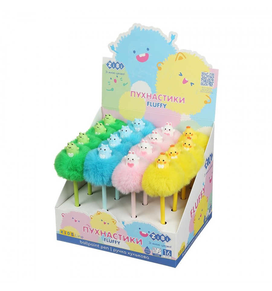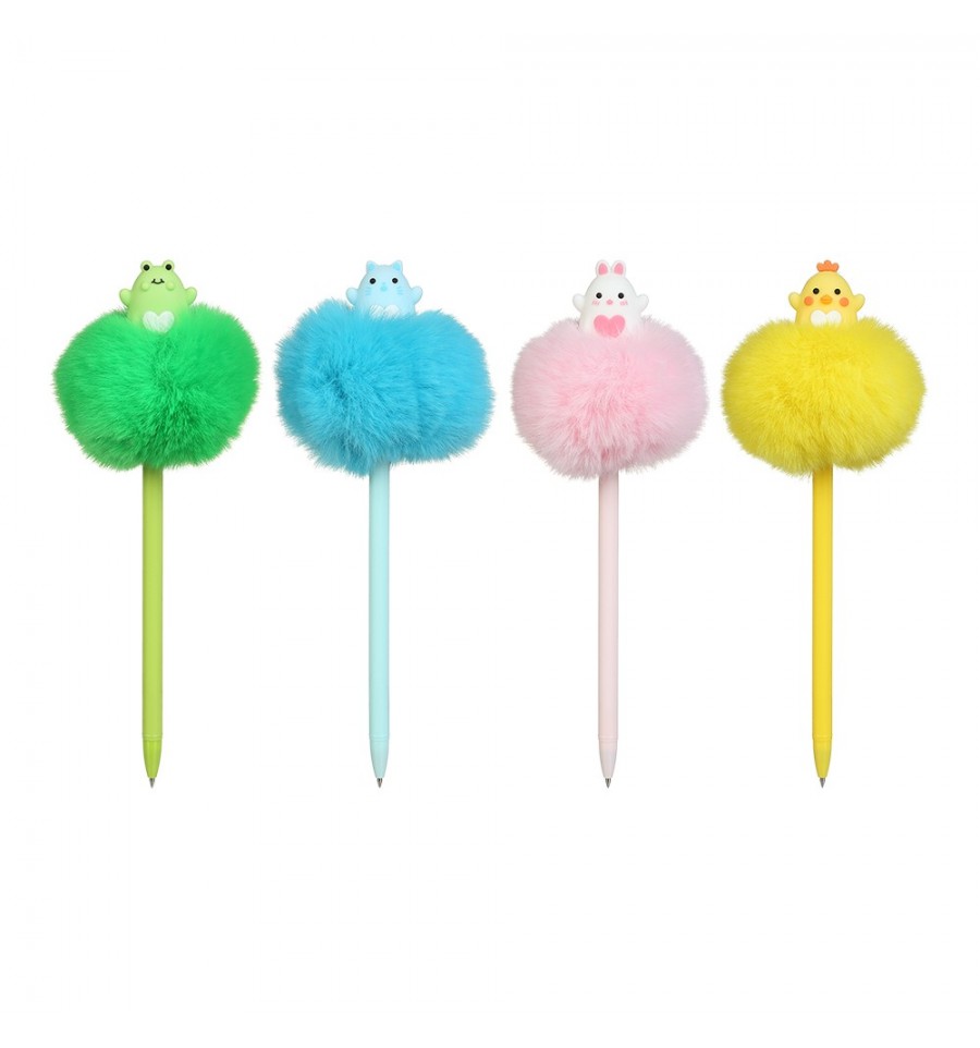 Шариковая ручка с помпоном FLUFFY HEART от ZiBi – оригинальный и интересный подарочек и инструмент для письма. Дизайнерское решение в виде большого помпона и фигурки-декора милого зверька на корпусе делает эти ручки любимцами школьников, студентов, а также творческих и креативных людей для создания праздничного настроения, записей, сюрпризов, игр с использованием инструментов для письма.большой помпон на конце корпуса диаметром около 8 см из приятного на ощупь пушистого искусственного меха ассорти цветов (салатовый, голубой, розовый, желтый). толщина линии письма ручки 0.7 мм. цвет чернил: синий надежный пишущий узел, изготовленный по классической для шариковых ручек технологии. круглая форма корпуса небольшого диаметра вентилируемый колпачок защищает наконечник ручки, предотвращает загрязнение чернилами предметов вокруг и делает использование более безопасным. сменный стержень длиной 131 мм материал корпуса: матовый пластик ассорти цветов (салатовый, голубой, розовый, желтый) упаковка: картонный шоу-бокс содержащий 16 ручек в четырех дизайнах ассорти.