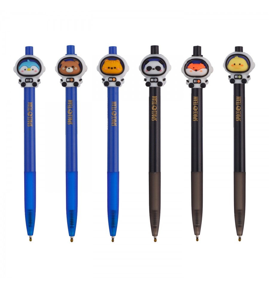 Автоматическая шариковая ручка SPACE TEAM от ZiBi – отличный письменный инструмент на каждый день. Оригинальное дизайнерское решение в виде стильного креативного декора на корпусе делает эти ручки любимым функциональным помощником школьников, студентов, а также творческих и креативных людей для использования в обучении, ведении дневников, записи новых идей и планов.толщина линии письма 0.7 мм цвет чернил: синий надежный пишущий узел, изготовленный по классической для шариковых ручек технологии. круглая форма корпуса оптимального диаметра, удобная для длительного письма кнопочный автоматический механизм позволяет скрыть пишущий наконечник и предотвратить его повреждение, а также загрязнение чернилами соседних с ручкой вещей. сменный стержень длиной 110 мм прозрачная часть корпуса у кончика ручки для возможности контроля остатка чернил. материал корпуса: глянцевый пластик синего и черного насыщенного цвета упаковка: картонный шоу-бокс, содержащий 36 ручек в шести дизайнах.