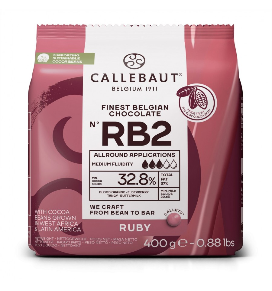 Callebaut Шоколад Ruby молочный 32,8% 400г. Это новый и усовершенствованный вариант оригинального рубинового шоколада, характеризующийся еще более насыщенным фруктовым вкусом с выраженной вяжущей кислинкой. В отличие от стандартной версии, RB2 создан для максимального раскрытия интенсивных вкусовых свойств особых рубиновых какао-бобов. Именно шоколад Ruby стал официально признанным четвертым видом шоколада, заняв свое место рядом с темным, молочным и белым. Аллергены: молоко, соя. Срок годности: 12 месяцев. Производитель: Barry Callebaut Belgium N.V. Адрес производителя: Ааллстерсештраат 122, Леббке-Вейзе, Бельгия, 9280. Страна: Бельгия. Масса нетто: 400 г.