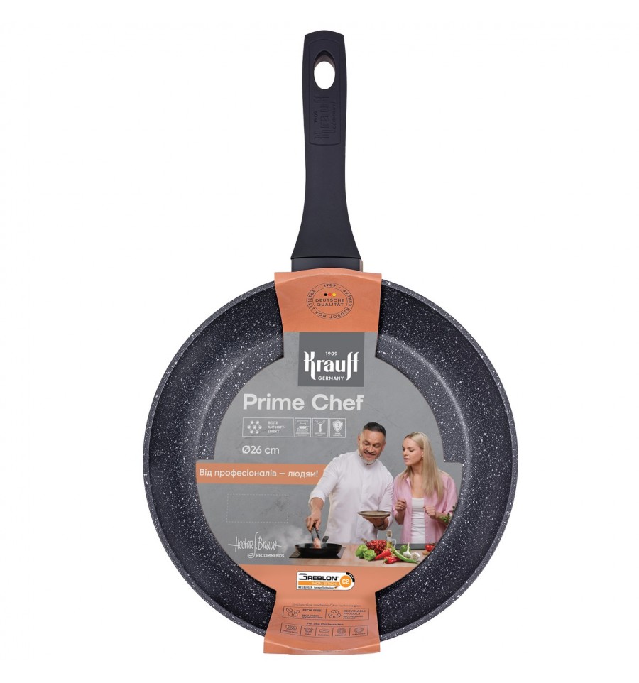 Сковорода алюм.с антипригарным мраморным покрытием, диам.26см. Изготавливается из алюминия, бакелитовая ручка с soft touch покрытием. Соответствует требованиям действующего санитарного законодательства Украины. Не требует обязательной сертификации. Не содержит вредных веществ. Предназначена для использования по назначению в обиходе. Не использовать абразивные моющие средства. Изготовлен по технологии Krauff GmbH, Germany Ostendstraße 204, 90482, Nürnberg, Germany адрес производственных мощностей: Нинбо Голден Элефан Китченвар Ко, ЛТД, Циувон, Лонгшан таун, Сикси Сити, Нинбо, Жейжианг, КН. Дата изготовления: август 2025г. Срок годности: не ограничен при соблюдении правил использования от производителя. Условия хранения: Не требует особых условий хранения Продавец и предприятие, осуществляющее функции производителя товара по принятию претензий от потребителей в Украине: ООО «ТГТНП» Адрес: пр-т Слобожанский, 31Д, г. Днепр, 49083, Украина e-mail: office@tnp.com.ua тел3:38