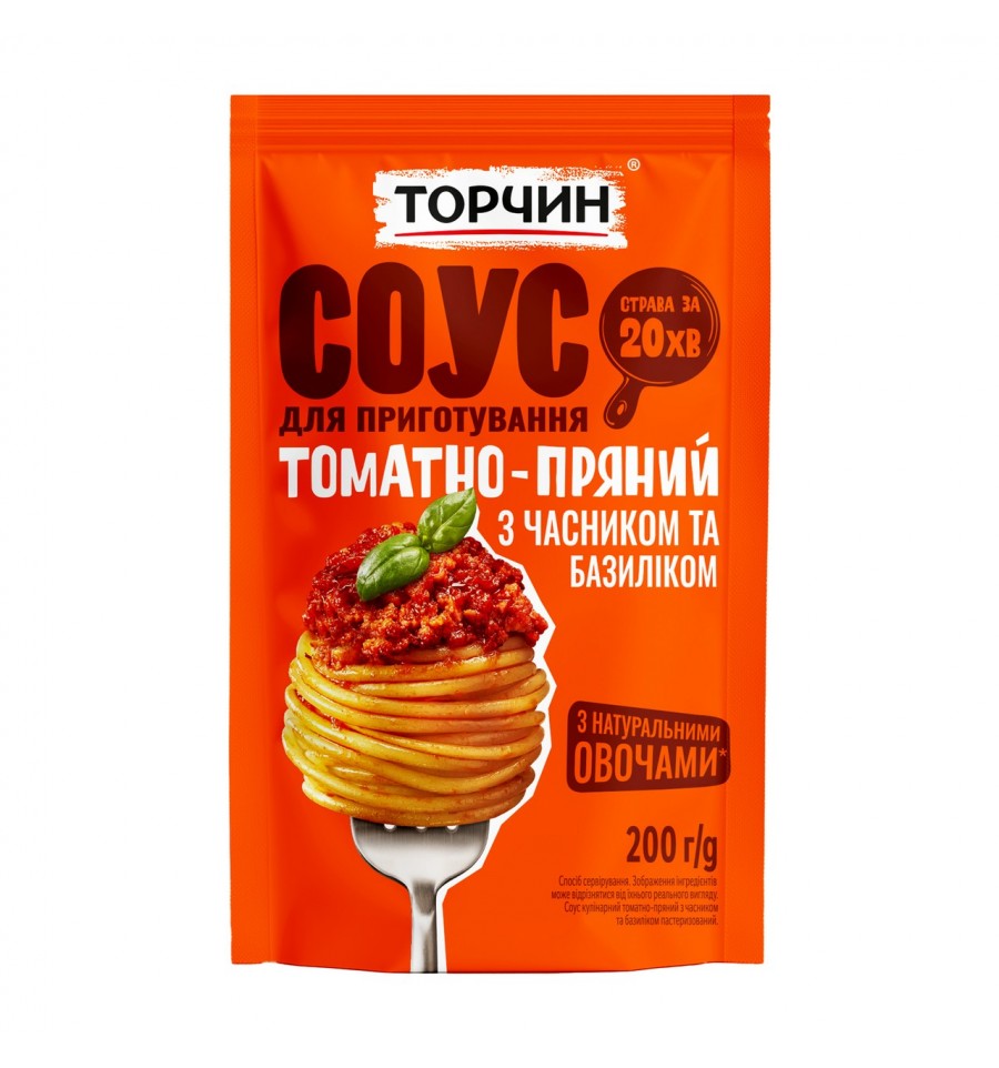 Соус Торчин Томатно-пряный с чесноком и пастеризованным базиликом 200г. Состав: вода питьевая, паста томатная (20.3%), сахар, подсолнечное масло рафинированное дезодорированное, овощи сушеные (4.9%) (томаты (3.9%), чеснок (1%), соль поваренная, уксус спиртовой, лук карамелизованный (лук, лук, лимонный сок), крахмал модифицированный кукурузный, базилик сушеный (0.4%), пряности сушеные молотые (0.4%) (перец черный (0.2%), лавровый лист), петрушка сушеная, орегано сушеная, натуральный ароматизатор2 148ккал/100г. Питательная (пищевая) ценность продукта: белки – 1.9г/100г, жиры – 6.5г/100г, насыщенные жиры – 0.7г/100г, углеводы – 19г/100г, из них сахара – 10г. Условия хранения: хранить при температуре 0..+25ºC и относительной влажности воздуха не более 75%. Срок годности: 9 месяцев. Нестле Украина, ул. Большая Васильковская, дом 139, г. Киев, Украина, 03150. Масса нетто: 200г.
