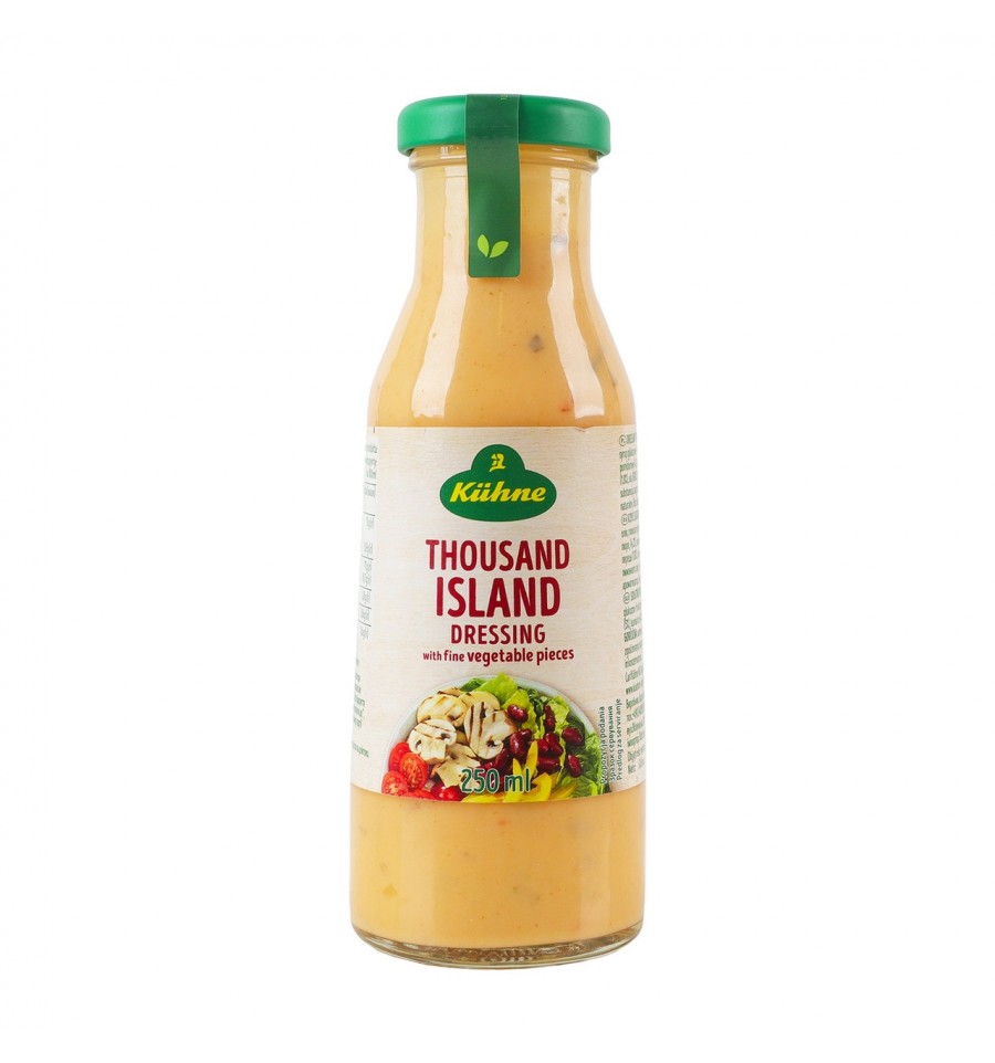 Соус Kuhne Тысяча островов салатный 250мл. Состав: вода питьевая, рапсовое масло, глюкозо-фруктозный сироп, спиртовой уксус, лук (5%), томатное пюре (4.2%), корнишоны (3.2%), модифицированный крахмал, болгарский перец (1.8%), соль кухонная, семена сока, загуститель ксантановой камедь, пряности, натуральный ароматизатор. Энергетическая ценность продукта: 695кДж/100г, 168ккал/100г. Питательная (пищевая) ценность продукта: белки – 0.6г/100г, жиры – 13г/100г, насыщенные жиры – 0.9г/100г, углеводы – 11г/100г, из них сахара – 8.7г/100г, соль – 1.6. Рекомендуемые способы применения: перед употреблением взболтать. Условия хранения: хранить при температуре +6..+25ºC и относительной влажности воздуха не более 75%. Срок годности: 18 месяцев. Страна изготовитель: Германия. Производитель и адрес производителя: Carl Kühne KG (GmbH & Co.), Кюнехофе, 11, Гамбург, Германия, 22761. Импортер и адрес импортера: ООО "Арсов", ул. Яблонская, 11а, пос. Ворзель, Киевская обл., Украина, 08296. Объем: 250мл.