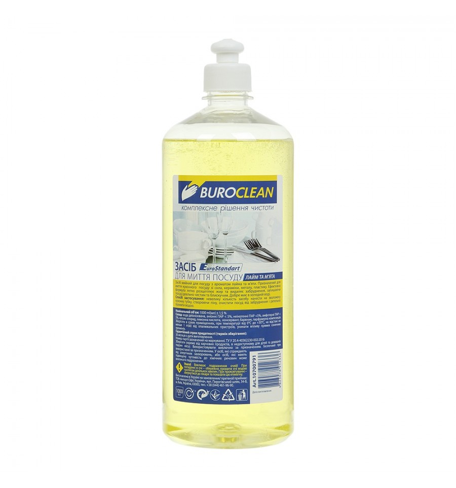 Средство для мытья посуды от BUROCLEAN с ароматом "Лайм и мята" предназначено для ручной мойки кухонной посуды из стекла, керамики, металла, пластика, а также для мытья любого кухонного инвентаря. Эффективная формула легко расщепляет жир и удаляет загрязнение, оставляя посуду идеально чистой и блестящей. Рекомендуется применять в быту, на предприятиях, в гостинично-ресторанном хозяйстве и других отраслях промышленности.Объем 1000 мл Аромат: лайм и мята Густая консистенция Легко удаляет жир и другие пищевые загрязнения даже в холодной воде Устраняет неприятные запахи Эффективен в воде любой жесткости. Пластиковая бутылка с колпачком-дозатором для удобного и экономного использования. Состав: вода деионизированная, анионные ПАВ < 5%, неиногенные ПАВ < 5%, амфотерные ПАВ < 5%, натрия хлорид, лимонная кислота, консервант, краситель, парфюмерная композиция.