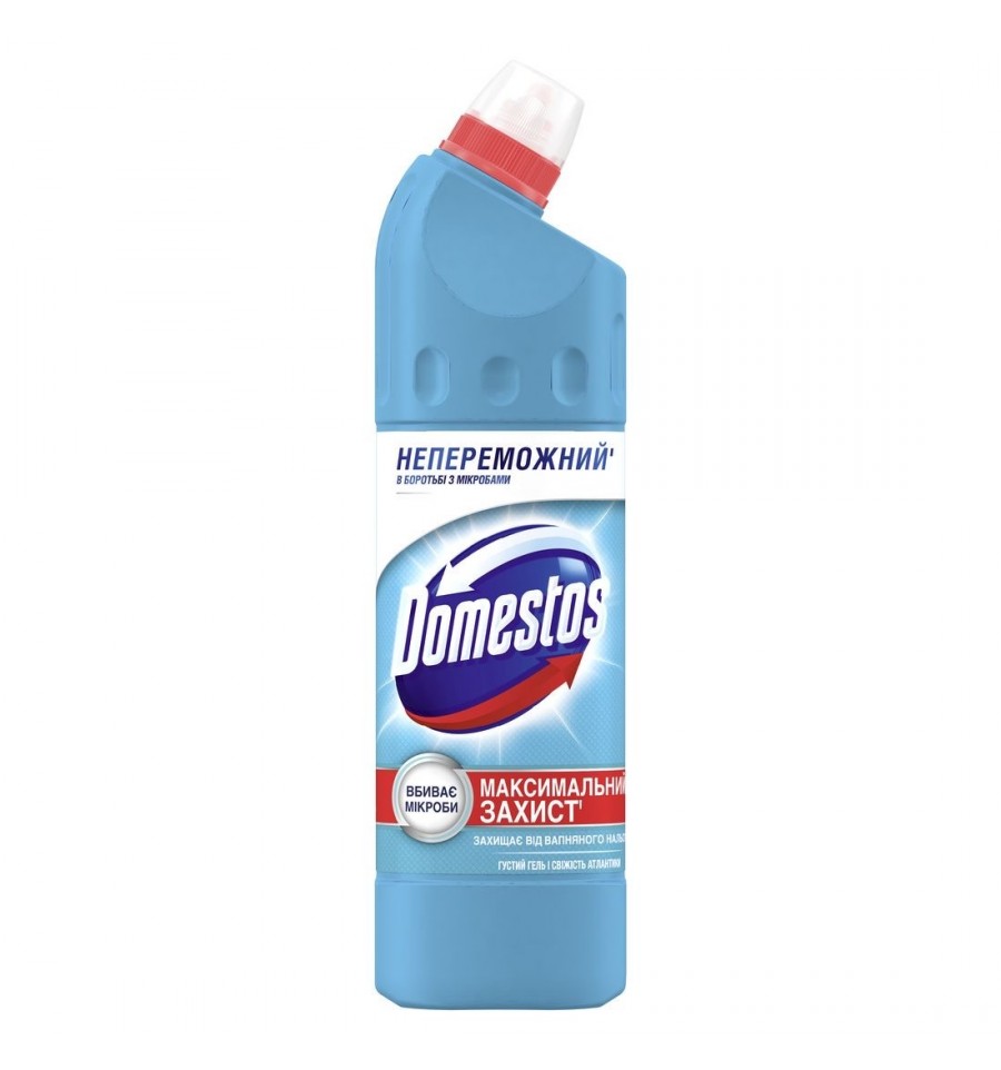 Domestos — универсальное чистящее средство для всего дома, ведь оно эффективно очищает и дезинфицирует туалет, ванну, раковину, изразцы, рабочие поверхности в кухне, а также пол. Эффективен против всех известных науке бактерий, грибков, вирусов и спор. Обладает консистенцией густого геля, благодаря которой помогает удалить даже устаревшие загрязнения. Полностью уничтожает неприятные запахи, одновременно заменяет их приятным ароматом океанской свежести. Помогает справиться с забивкой труб в кухне и ванной.