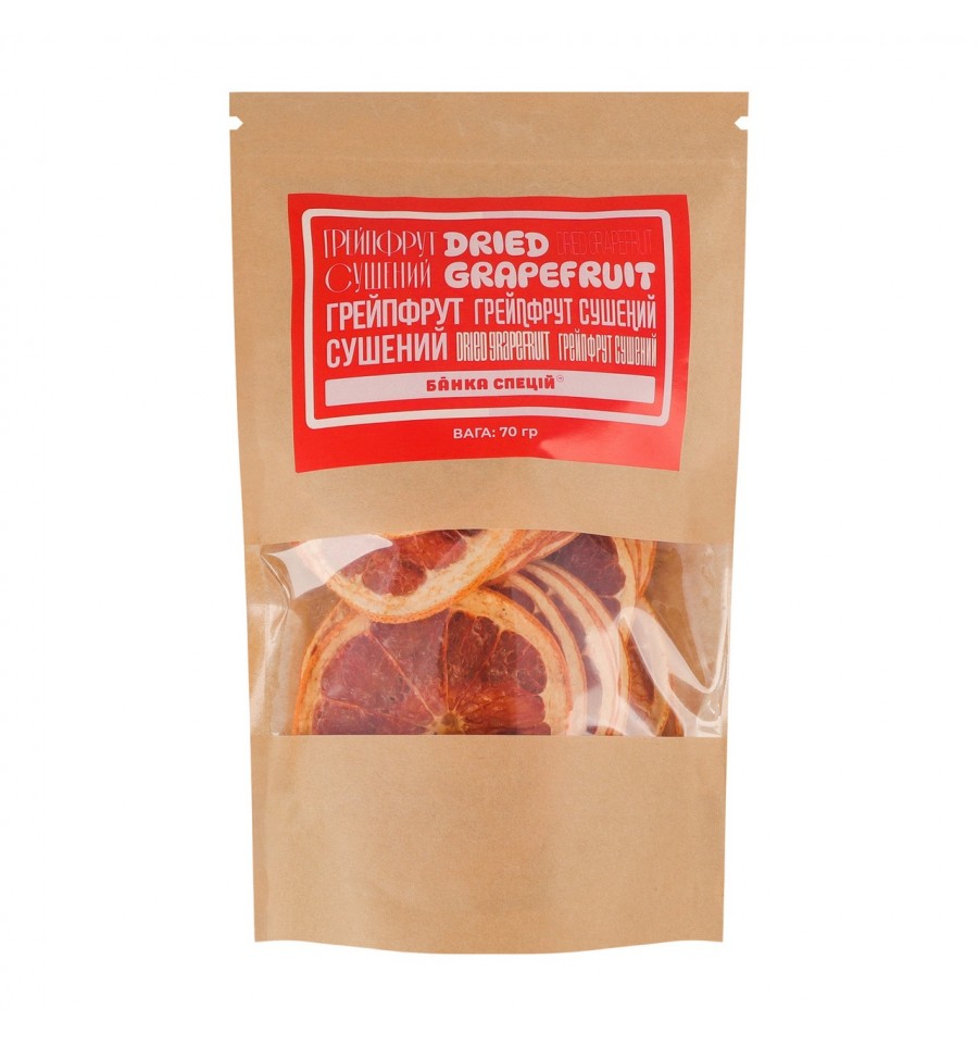 Грейпфрут Банка Специй сушеный 70г. Состав: грейпфруты сушеные. Энергетическая ценность продукта: 240ккал/100г. Питательная (пищевая) ценность продукта: белки – 7г/100г, жиры – 1.8г/100г, углеводы – 54г/100г. Рекомендуемые способы применения: Добавь это к: напиткам, сиропом, десертам. Условия хранения: хранить при температуре +5…25ºC и относительной влажности воздуха не более 65%. Без попадания прямых солнечных лучей. Срок годности: 12 месяцев. Страна изготовитель: Украина. Производитель: ООО Банк Специй. Адрес производственных мощностей: тупик Тяжиловский, 1е, г. Винница, Украина. Масса нетто: 70г.