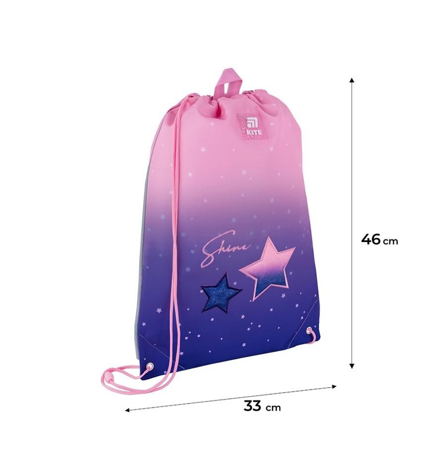 Сумка для обуви Kite K25-600M-3 изготовлена из прочного полиэстера. Незаменимый аксессуар для каждого школьника: в нем очень удобно носить и хранить сменную обувь и форму. Маст-хэв для физкультуры, танцев и спортивных секций. Сумка невероятно легкая и компактная, в сложенном виде поместится даже в кармане.Простота в использовании. Закрывается и открывается одним движением. С двух сторон затягивается шнурками и превращается в мини-рюкзачок, который можно носить за спиной или на плече. Для удобства предусмотрена петля для подвешивания сумки на крючок или вешалку.Главная особенность – практичность! Прочный износостойкий полиэстер выдерживает нагрузку на разрывы, принт устойчив к выгоранию. Сумочка легко стирается руками, она быстро высыхает и долго сохраняет свой первоначальный вид. Плотная ткань защищает одежду и рюкзак от песка и возможных загрязнений, которые могут быть на обуви.Безопасность. Шнурки оснащены специальными пластиковыми баклами, автоматически расстегивающимися при сильном натяжении. Таким образом, они мгновенно освобождают ребенка, если он перетянет шнурок или запутается в нем.Стильный дизайн поднимает настроение и дополняет повседневный школьный образ. С таким красивым и удобным аксессуаром ребенок посещает спортивные занятия с радостью.Трендовая школьная капсула. Сумка идеально сочетается с рюкзаком Kite K25-771S-1 и пеналом Kite K25-662-9. Капсульная коллекция в едином дизайне создает эффектный школьный комплект, который будет круглый год поднимать настроение и мотивировать учиться с удовольствием.Особенности:1 отделение – вместительное и просторное; петля для вешалки – для удобного хранения; легко закрывается – затягивается шнурками; материал – полиэстер: прочный и простой в уходе; размер: 46x33 см – оптимальный для размещения пары обуви; по бокам сумки расположены светоотражающие ленты, чтобы ребенок был заметен на дороге в темное время суток; стильный дизайн – для отличного настроения и эффектного вида; можно собрать капсульную коллекцию с рюкзаком и пеналом; предназначена для переноски и хранения спортивной обуви и одежды.