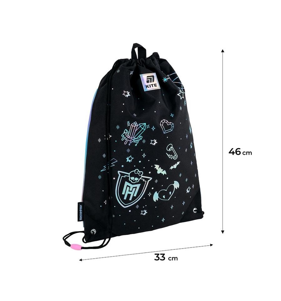 Сумка для обуви Kite MH25-600M изготовлена из прочного полиэстера. Незаменимый аксессуар для каждого школьника: в нем очень удобно носить и хранить сменную обувь и форму. Маст-хэв для физкультуры, танцев и спортивных секций. Сумка невероятно легкая и компактная, в сложенном виде поместится даже в кармане.Простота в использовании. Закрывается и открывается одним движением. С двух сторон затягивается шнурками и превращается в мини-рюкзачок, который можно носить за спиной или на плече. Для удобства предусмотрена петля для подвешивания сумки на крючок или вешалку.Главная особенность – практичность! Прочный износостойкий полиэстер выдерживает нагрузку на разрывы, принт устойчив к выгоранию. Сумочка легко стирается руками, она быстро высыхает и долго сохраняет свой первоначальный вид. Плотная ткань защищает одежду и рюкзак от песка и возможных загрязнений, которые могут быть на обуви.Безопасность. Шнурки оснащены специальными пластиковыми баклами, автоматически расстегивающимися при сильном натяжении. Таким образом, они мгновенно освобождают ребенка, если он перетянет шнурок или запутается в нем.Стильный дизайн в лицензии Monster High поднимает настроение и дополняет повседневный школьный образ. С таким красивым и удобным аксессуаром ребенок посещает спортивные занятия с радостью.Трендовая школьная капсула. Сумка идеально сочетается с рюкзаком Kite MH25-700M и пеналом Kite MH25-599. Капсульная коллекция в едином дизайне создает эффектный школьный комплект, который будет круглый год поднимать настроение и мотивировать учиться с удовольствием.Особенности:1 отделение – вместительное и просторное; петля для вешалки – для удобного хранения; легко закрывается – затягивается шнурками; материал – полиэстер: прочный и простой в уходе; размер: 46x33 см – оптимальный для размещения пары обуви; по бокам сумки расположены светоотражающие ленты, чтобы ребенок был заметен на дороге в темное время суток; стильный дизайн – для отличного настроения и эффектного вида; можно собрать капсульную коллекцию с рюкзаком и пеналом; предназначена для переноски и хранения спортивной обуви и одежды.