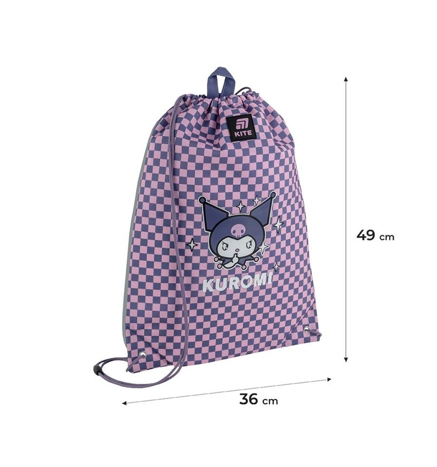 Сумка для обуви Kite HK25-600L-2 изготовлена ​​из прочного полиэстера. Незаменимый аксессуар для школьников и студентов: в котором удобно носить и хранить сменную обувь и форму. Маст-хев для физкультуры, танцев, спортивных секций, тренажерного зала, йоги или бассейна. Сумка невероятно легкая и компактная, в сложенном виде легко разместится в кармане.Простота в использовании. Закрывается и открывается одним движением. С двух сторон затягивается шнурками и превращается в мини-рюкзак, который можно носить за спиной или на плече. Для удобства предусмотрена петля для подвешивания сумки на крючок или вешалку.Стильный дизайн поднимает настроение и эффектно дополняет обычный образ. С этим трендовым аксессуаром любимые спортивные хобби будут доставлять еще большую радость.Главная особенность – практичность! Прочный износостойкий полиэстер выдерживает нагрузку на разрывы, стойкий принт к выгоранию. Сумочку легко стирать (рекомендуется ручная стирка), быстро высыхает и долго сохраняет свой первоначальный вид. Плотная ткань защищает одежду и рюкзак от песка и возможных загрязнений, которые могут быть на обуви.Безопасность. Шнурки оснащены специальными пластиковыми баклами, автоматически расстегивающимися при сильном натяжении. Таким образом они мгновенно увольняют человека, если он перетянет шнурок или запутается в нем.Особенности:1 отделение – вместительное и просторное; петля для вешалки – для удобного хранения; по бокам сумки расположены светоотражающие ленты, чтобы ребенок был заметен на дороге в темное время суток; легко закрывается – затягивается шнурками; материал – полиэстер: прочный и простой в уходе; стильный дизайн у лицензии Kuromi – эффектно дополняет образ; предназначена для переноски и хранения спортивной обуви и одежды.