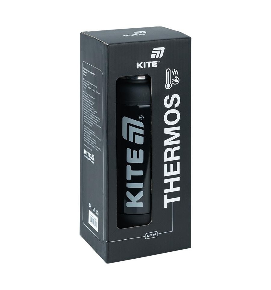 Термос Kite K25-1225-1 1200 мл — надежное решение для тех, кто ценит тепло горячего напитка или приятную прохладу во время длительных прогулок, работы на открытом воздухе или путешествий. Благодаря большому объему и продуманному дизайну, он идеально подходит для взрослого ритма жизни: активной, насыщенной, мобильной.Вместительный объем 1200 мл позволяет взять с собой щедрую порцию чая, какао, компота или даже домашнего компота. Термос долго сохраняет температуру – напиток будет оставаться горячим или холодным до 24 часов.Крышка-чашка позволяет наслаждаться напитком так, будто вы дома. Из нее удобно пить как из привычного чашки. Внутри – удобный поильник и металлическая сеточка-фильтр, которые особенно пригодятся для заваривания чая с листьями или ягодами: все лишнее останется внутри, а вы получите чистый, вкусный напиток.Прорезиненная ручка-переноска и съемный текстильный ремешок на карабинах обеспечивают максимальный комфорт в пути. Носите термос в руке или через плечо – как вам удобно.Широкое горлышко делает термос простым в уходе: его легко разбирать, мыть и чистить ершиком. А качественный принт не стирается со временем и сохраняет аккуратный вид даже после длительного использования.Внутренняя колба изготовлена из пищевой нержавеющей стали AISI 304 – она не впитывает запахи, не влияет на вкус напитка и выдерживает ежедневную нагрузку. Внешние стены не нагреваются, поэтому держать термос в руке удобно, даже когда внутри горячий напиток.Особенности:объем 1200 мл - достаточно для целого дня; удерживает температуру до 24 часов – напиток остается именно таким, как вы любите; крышка-чашка – удобно пить где угодно; металлическая сеточка-фильтр - для компота, компота, травяного чая; удобный поильник – пить можно прямо из термоса (если напиток не сильно горячий); широкое горлышко - легко мыть и наполнять; нержавеющая сталь AISI 304 - безопасная, надежная, не впитывающая запахов; герметичная конструкция – ничего не прольется; прорезиненная ручка и ремешок на карабинах – удобно нести в руках или на плече; качественный принт – устойчив к износу, не теряет вид; стильная подарочная упаковка — приятная на ощупь коробка с окошком; размер 10,8х9,5х30 см.