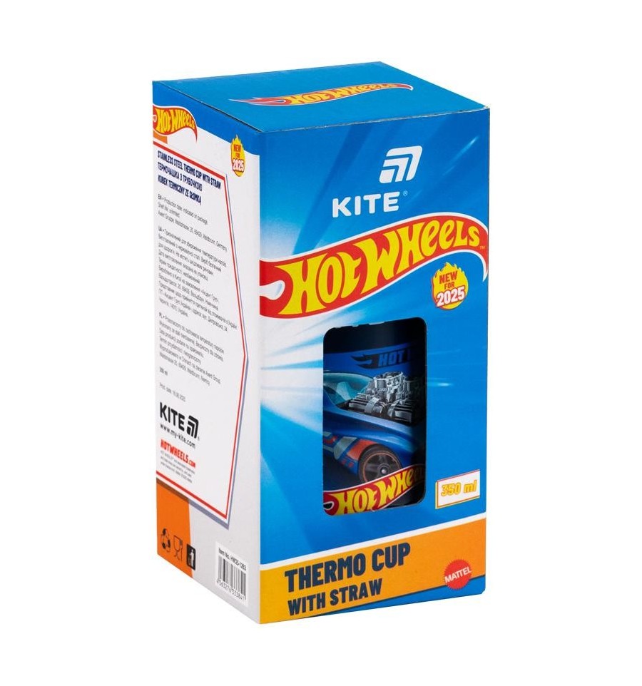 Термочашка Kite HW25-1263 – идеальный аксессуар для детей, благодаря которому любимый теплый напиток согреет в прохладную погоду, ведь термочашка держит тепло до 2 часов. А лимонад долго остаются вкусными и комфортными для питья: кружка сохраняет холод в течение 15 часов.Особая конструкция крышки с трубочкой обеспечивает комфортное питье. А входящая в комплект отдельная щеточка поможет легко и быстро поддерживать идеальную чистоту трубочки даже после соков или компотов с мякотью.Изготовлена из высококачественной нержавеющей стали SS 304, внутренняя колба не влияет на вкус напитка, не впитывает запахи и абсолютно безопасна для здоровья. Объем 350 мл – оптимален для ежедневного использования: достаточно напитка для активного ребенка, но легко поместится в рюкзаке или в детской руке.Термочашка готова к активному ритму жизни: крепкий корпус, нестирающийся яркий принт и герметичная крышка: все продумано для ежедневного использования.Яркий лицензионный дизайн с культовыми автомобилями Hot Wheels вдохновляет новые рекорды и добавляет драйву каждому дню: дома, в школе или на прогулке.Особенности:объем 350 мл – оптимально для детей; изготовлена из нержавеющей стали SS 304 – безопасна, прочна, не влияет на вкус; удобная трубочка для питья – легко пить в движении, не разливая; в комплекте – щеточка для чистки трубочки; сохраняет тепло до 2 часов, холод – до 15 часов; яркий лицензионный дизайн Hot Wheels; герметичная крышка – надежно закрывается, не протекает.