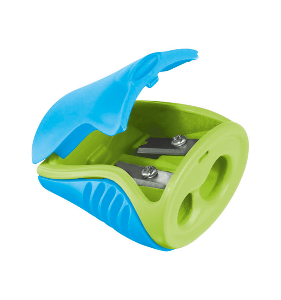 Компактный размер. Идеально подходит для пеналов. Произведена со стойких ударопрочных материалов. Крышка контейнера несъёмная, что предотвращает её потерю. 2 отверстия для стандартных и толстых карандашей. Тип упаковки: коробка. Цвет: голубой с салатовым, салатовый с розовым, красный с синим.