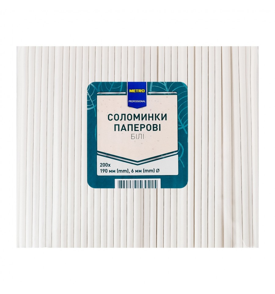 Новое Соломинки бумажные Metro Professional белые 6*190мм 200шт