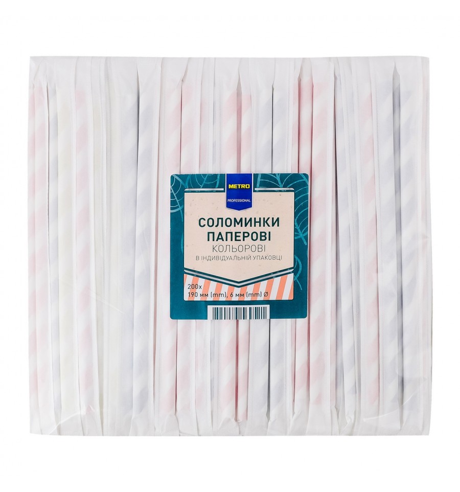 Соломинки бумажные Metro Professional цветные в индивидуальной упаковке 6*190мм 200шт/уп. Состав: бумага. Рекомендуемый способ приготовления/употребления: используйте изделие по назначению не более 30 минут для холодных напитков при температуре не выше +14ºC. Меры предосторожности: хранить на расстоянии от нагревательных устройств. Срок годности: 5 лет. Страна изготовитель: Украина. Производитель и адрес производителя: ООО ДММ-Партнер, ул. Лейпцигская, дом. 2/37, кв. 4, г. Киев, Украина, 01015. Адрес производственных мощностей: ул. Полевая, 15А, с. Старые Петровцы, Вышгородский р-н, Украина, 07353. Количество: 200шт.