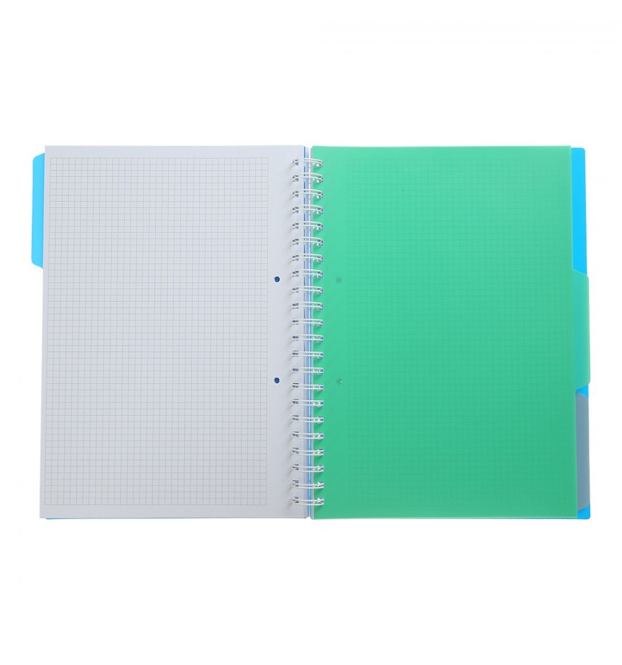 Тетрадь на пружине БРАЙТ - для ведения записей, конспектов, заметок, черновиков, графических зарисовок и т.д. Может использоваться работниками офисов и производств, государственных учреждений, финансовых организаций, учащимися, студентами и преподавателями.120 листов формат А4 внутренний блок: белая офсетная бумага плотностью 70 г/м² содержит 3 разноцветных пластиковых разделителя внутри внутреннего блока, что позволит удобно систематизировать различные записи в одной тетради. линирование в клеточку материал обложки: жесткий пластик, защищающий записи от намокания, смятия и загрязнения тип скрепления: металлическая пружина сбоку, которая обеспечивает легкое перелистывание листов и комфортное письмо с обеих сторон. имеет микроперфорацию листов для легкого и ровного их отделения. листы внутреннего блока имеют отверстия для подшивки в быстросшиватель. цвет обложки синий