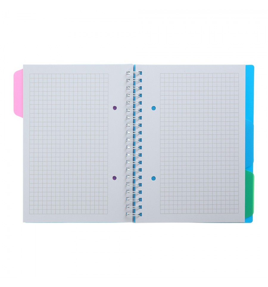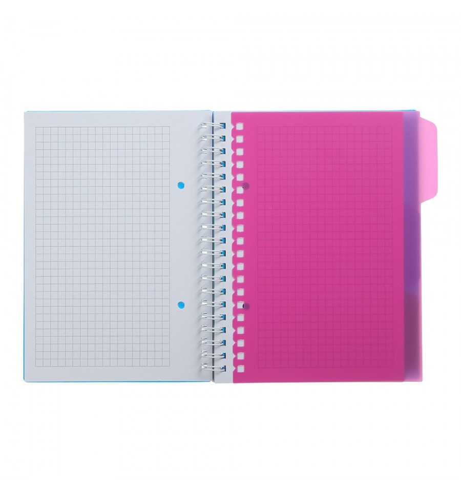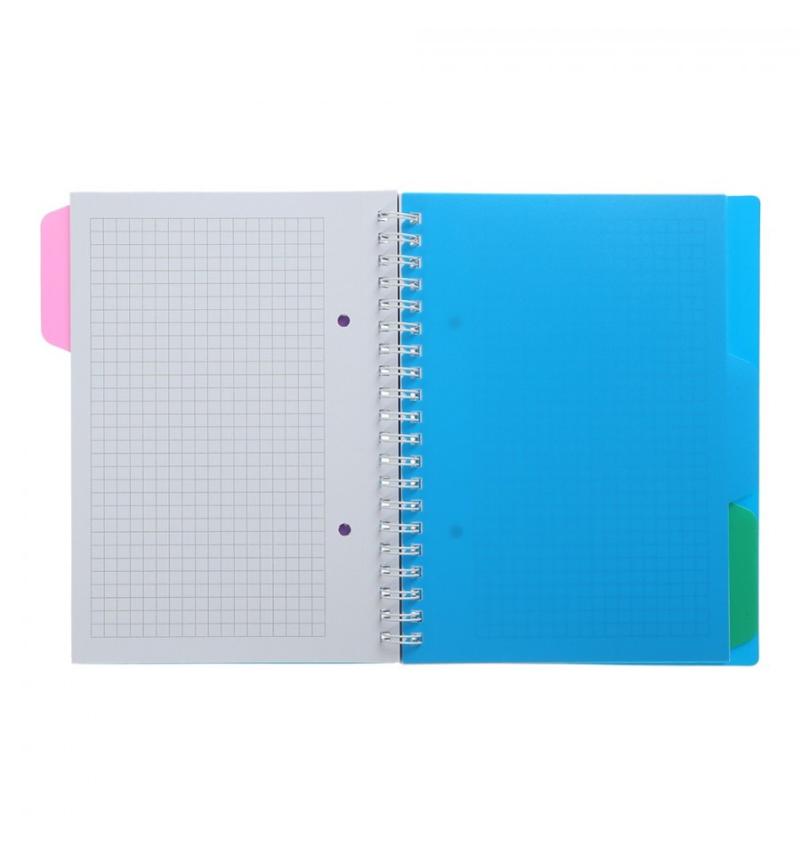 Тетрадь на пружине БРАЙТ - для ведения записей, конспектов, заметок, черновиков, графических зарисовок и т.д. Может использоваться работниками офисов и производств, государственных учреждений, финансовых организаций, учащимися, студентами и преподавателями.100 листов формат В6 внутренний блок: белая офсетная бумага плотностью 70 г/м² содержит 3 разноцветных пластиковых разделителя внутри внутреннего блока, что позволит удобно систематизировать различные записи в одной тетради. линирование в клеточку материал обложки: жесткий пластик, защищающий записи от намокания, смятия и загрязнения тип скрепления: металлическая пружина сбоку, которая обеспечивает легкое перелистывание листов и комфортное письмо с обеих сторон. имеет микроперфорацию листов для легкого и ровного их отделения. листы внутреннего блока имеют отверстия для подшивки в быстросшиватель. цвет обложки синий