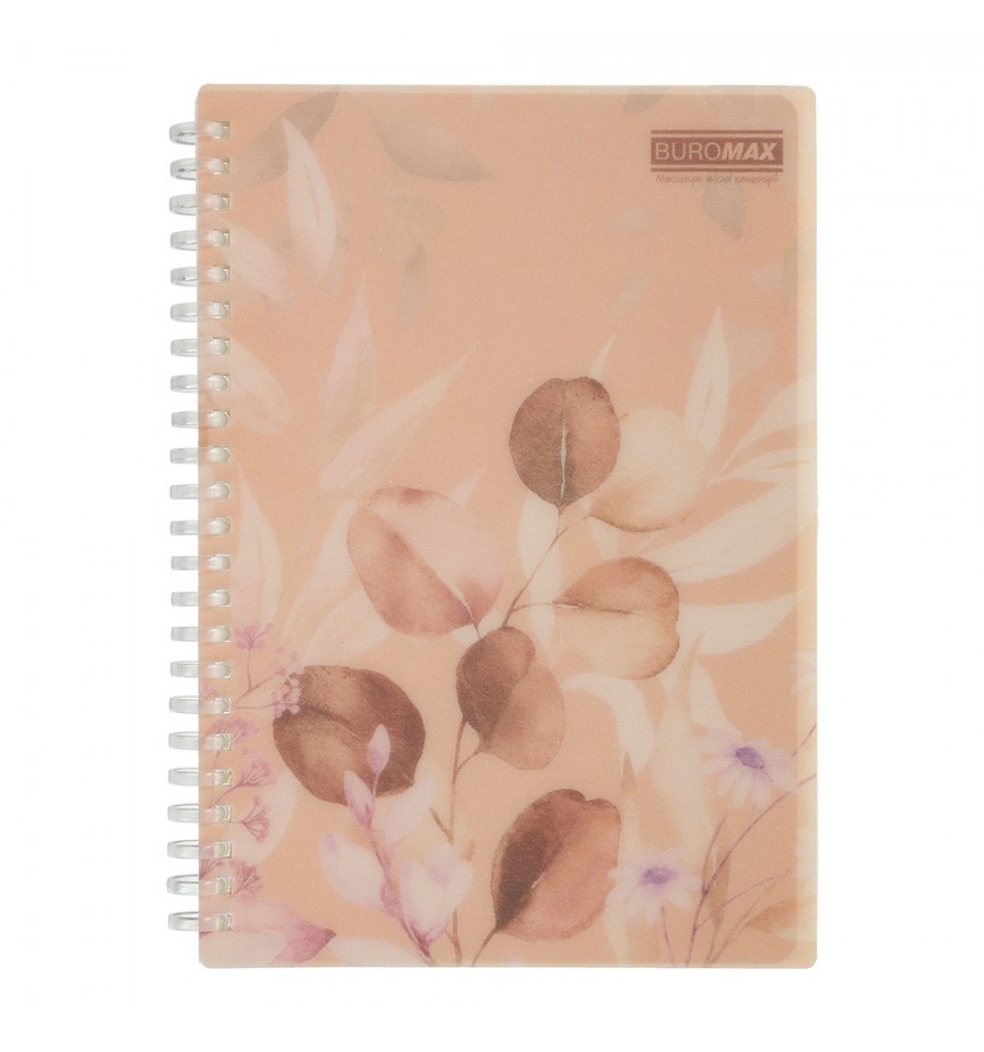 Тетрадь на пружине коллекции ARABESKI от BUROMAX – красивый и стильный помощник, который подчеркнет Вашу индивидуальность и станет незаменимым другом в систематизации записей, идей и мнений. Его можно носить с собой и сразу делать важные пометки. Идеальное решение как для офиса, так и для учебного заведения и дома! Обложка, выполненная в изысканном цветочном дизайне, обязательно будет привлекать внимание и вдохновлять!формат А5 80 листов обложка из плотного матового непрозрачного пластика (толщина 600 мкм) - отлично защитит содержимое тетради от заминки, намокания и других механических повреждений или загрязнений. крепление листов: силиконовая вертикальная пружина (сбоку), позволяющая легко пролистывать и загибать страницы (все ложится идеально), а также удобно писать на обеих страницах разворота внутренний блок: кремовая офсетная бумага плотностью 70 г/м² линирование: клетка, выполненная серым цветом, оптимальным для восприятия зрением человека основной цвет обложки: персиковыйКупите другие канцтовары серии ARABESKI, с цветочными и пастельными дизайнами и соберите собственную уникальную коллекцию, которая обязательно подчеркнет Ваш вкус и обязательно будет радовать взгляд!