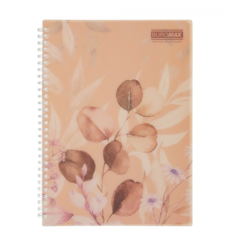Тетрадь на пружине коллекции ARABESKI от BUROMAX – красивый и стильный помощник, который подчеркнет Вашу индивидуальность и станет незаменимым другом в систематизации записей, идей и мнений. Его можно носить с собой и сразу делать важные пометки. Идеальное решение как для офиса, так и для учебного заведения и дома! Обложка, выполненная в изысканном цветочном дизайне, обязательно будет привлекать внимание и вдохновлять!формат В5 (размер 190х260 мм) 80 листов обложка из плотного матового непрозрачного пластика (толщина 600 мкм) - отлично защитит содержимое тетради от заминки, намокания и других механических повреждений или загрязнений. крепление листов: силиконовая вертикальная пружина (сбоку), позволяющая легко пролистывать и загибать страницы (все ложится идеально), а также удобно писать на обеих страницах разворота внутренний блок: кремовая офсетная бумага плотностью 70 г/м² линирование: клетка, выполненная серым цветом, оптимальным для восприятия зрением человека основной цвет обложки: персиковыйКупите другие канцтовары серии ARABESKI, с цветочными и пастельными дизайнами и соберите собственную уникальную коллекцию, которая обязательно подчеркнет Ваш вкус и обязательно будет радовать взгляд!