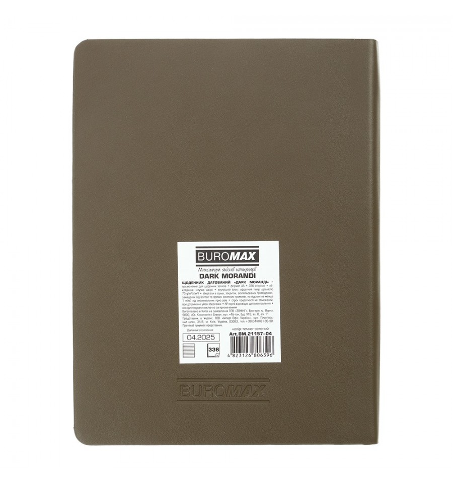 Дневники BUROMAX – это всегда широкий выбор самых разных обложек, фактур, размеров и цветов. Мы найдем подход к сердцу каждого покупателя!Гибкая обложка из искусственной кожи дневника DARK MORANDI выполнена из приятного на ощупь материала в насыщенном цвете модной палитры "моранди" и имеет оригинальное слепое тиснение года на лицевой стороне. Гармонично дополняет дизайн тонированный в цвет обложки срез внутреннего блока.Формат А5 336 страниц Внутренний блок: офсетная бумага кремового цвета плотностью 70 г/м² Закладка-лесое в цвет обложки Перфорированные уголки листов Печать блока в 2 цвета: серый и бордовый Два языка блока: украинский, английский Форзацы в цвет обложки Индивидуальная упаковка: картонная коробка Структура внутреннего блока:Страница для внесения личной информации Календари на 2025 – 2028 годы Планинг на 2026 год Информационно-справочный блок: национальные, религиозные, профессиональные праздники и памятные даты, знаки зодиака, телефонные коды мобильных операторов и областных центров Украины, буквенные автомобильные коды стран, таблица расстояний между областными центрами Украины, справочник систем измерения, международные знаки соответствия, знаки ухода за одеждой Датированная страница на каждый день года с организатором времени от 7:00 до 21:00, календарем на текущий/следующий месяц, обозначением дня недели, знака зодиака, именинников Алфавитная книга для внесения контактов Дневник BUROMAX формата А5 – это выбор, проверенный временем, самый популярный формат для незаменимого помощника в планировании Вашего рабочего дня!