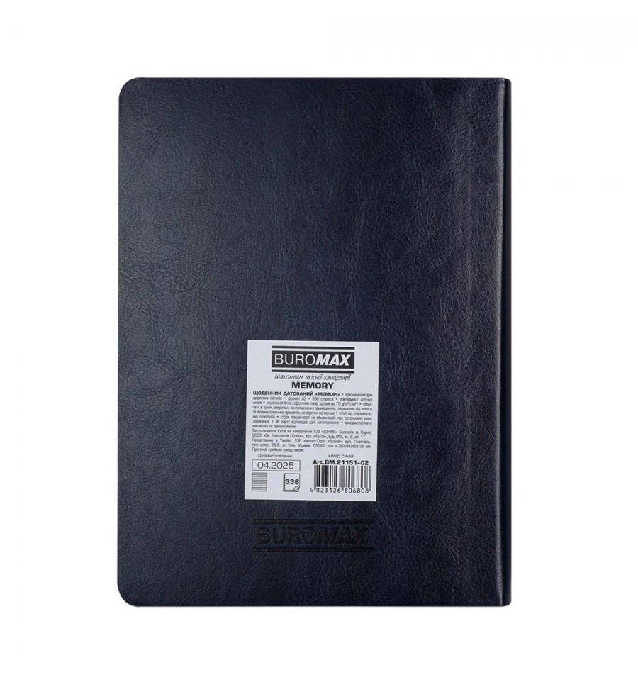 Дневники BUROMAX – это всегда широкий выбор самых разных обложек, фактур, размеров и цветов. Мы найдем подход к сердцу каждого покупателя!Гибкая обложка из гладкой искусственной кожи дневника MEMORY имеет 3D надпись на лицевой стороне, сделанную контрастным золотым цветом. Гармонично дополняет дизайн тонированный в цвет обложки срез внутреннего блока.Формат А5 336 страниц Внутренний блок: офсетная бумага кремового цвета плотностью 70 г/м² Закладка-лесое в цвет обложки Перфорированные уголки листов Печать блока в 2 цвета: серый и бордовый Два языка блока: украинский, английский Карты Украины и Европы на форзацах Индивидуальная упаковка: картонная коробка Структура внутреннего блока:Страница для внесения личной информации Календари на 2025 – 2028 годы Планинг на 2026 год Информационно-справочный блок: национальные, религиозные, профессиональные праздники и памятные даты, знаки зодиака, телефонные коды мобильных операторов и областных центров Украины, буквенные автомобильные коды стран, таблица расстояний между областными центрами Украины, справочник систем измерения, международные знаки соответствия, знаки ухода за одеждой Датированная страница на каждый день года с организатором времени от 7:00 до 21:00, календарем на текущий/следующий месяц, обозначением дня недели, знака зодиака, именинников Алфавитная книга для внесения контактов