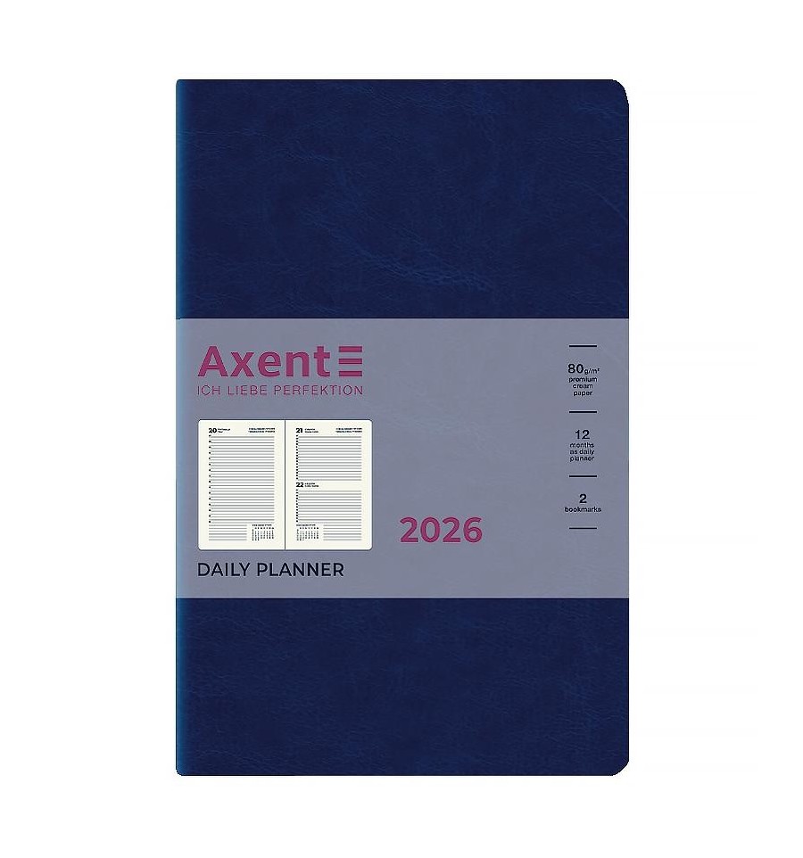 Удобный ежедневник Axent из серии Partner City в мягкой обложке с серебряным срезом. Используется для ежедневных записей, деловых и творческих задач.Мягкая обложка помогает сохранить аккуратный и презентабельный вид в течение длительного времени. Качественная кремовая бумага плотностью 80 г/м2 хорошо впитывает чернила и обеспечивает комфортное письмо. Удобно делать записи, чертить и рисовать. Ежедневник имеет датированный блок в линию на каждый день.Внутренний блок на украинском языке. Дневник содержит календарь на 2026-2027 год, общее недельное расписание, информацию о праздниках, важные номера телефонов, часовые пояса стран мира, единицы измерения, шкалу температур.Две разноцветные закладки-ляссе позволяют быстро найти и открыть нужные страницы. Содержит 168 листов, размер – 145*210 мм. Карманы на форзаце нет. Нет тесьмы на обложке и петли для ручки.