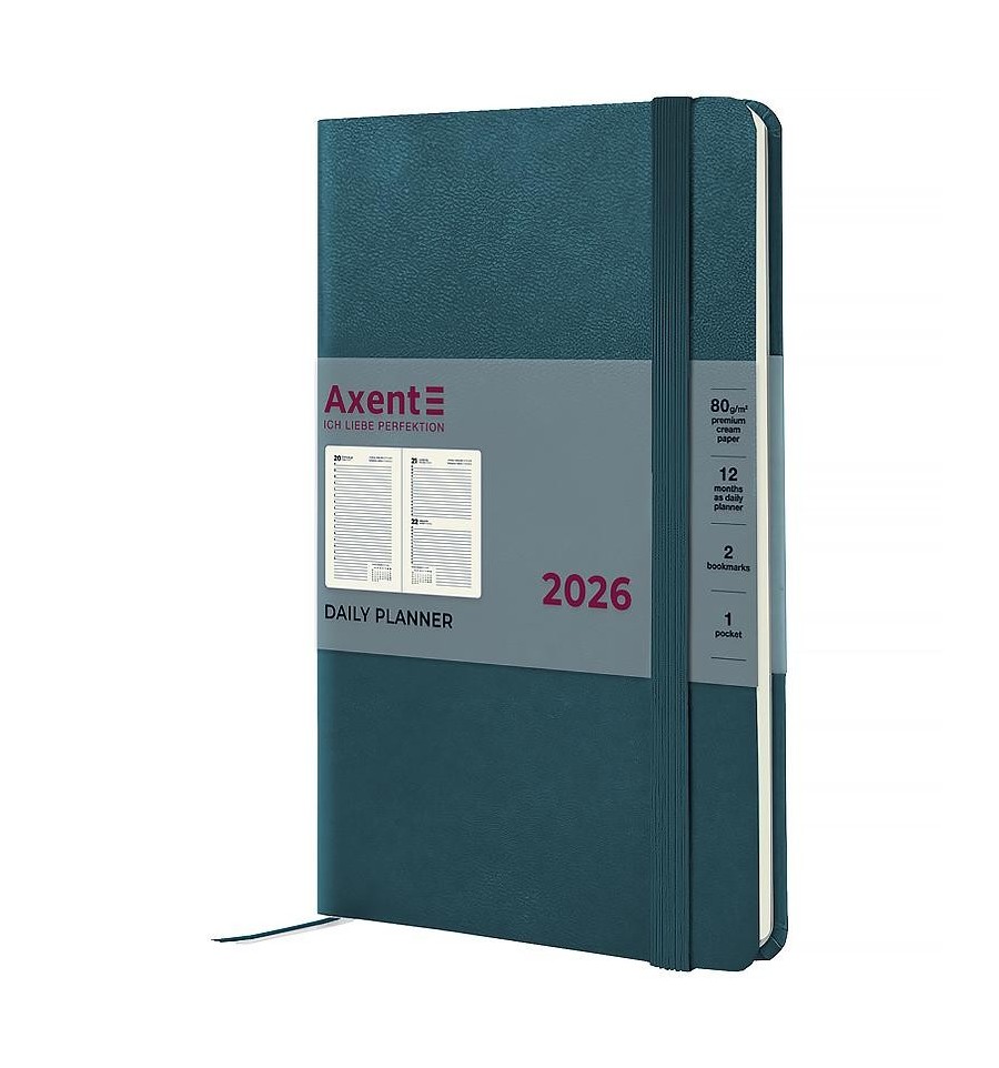 Удобный дневник Axent из серии Partner Strong в жесткой обложке. Используется для ежедневных записей, деловых и творческих задач.Твердый переплет помогает сохранить аккуратный и презентабельный вид в течение длительного времени. Качественная кремовая бумага плотностью 80 г/м2 хорошо впитывает чернила и обеспечивает комфортное письмо. Удобно делать записи, чертить и рисовать. Ежедневник имеет датированный блок в линию на каждый день.Внутренний блок на украинском языке. Дневник содержит календарь на 2026-2027 год, общее недельное расписание, информацию о праздниках, важные номера телефонов, часовые пояса стран мира, единицы измерения, шкалу температур.Две разноцветные закладки-ляссе позволяют быстро найти и открыть нужные страницы. Содержит 168 листов, размер – 145*210 мм. Петли для ручки нет. Карман на форзаце.