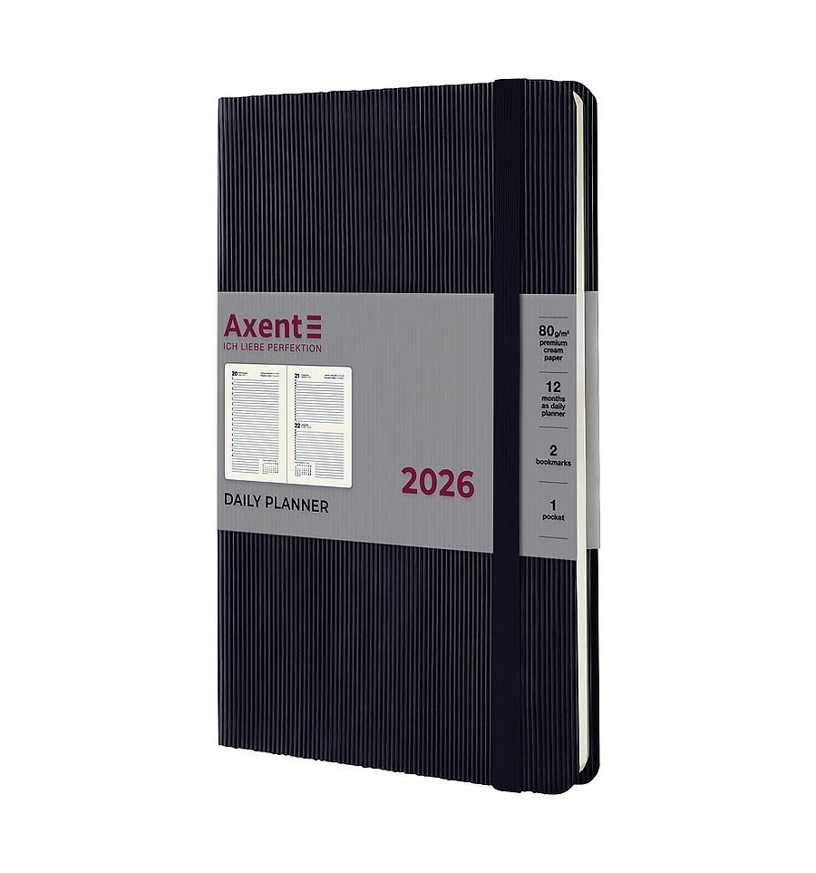 Удобный дневник Axent из серии Partner Lines в твердом переплете. Используется для ежедневных записей, деловых и творческих задач.Твердый переплет помогает сохранить аккуратный и презентабельный вид в течение длительного времени. Качественная кремовая бумага плотностью 80 г/м2 хорошо впитывает чернила и обеспечивает комфортное письмо. Удобно делать записи, чертить и рисовать. Ежедневник имеет датированный блок в линию на каждый день.Внутренний блок на украинском языке. Дневник содержит календарь на 2026-2027 год, общее недельное расписание, информацию о праздниках, важные номера телефонов, часовые пояса стран мира, единицы измерения, шкалу температур.Две разноцветные закладки-ляссе позволяют быстро найти и открыть нужные страницы. Содержит 168 листов, размер – 145*210 мм. Петли для ручки нет. Карман на форзаце.