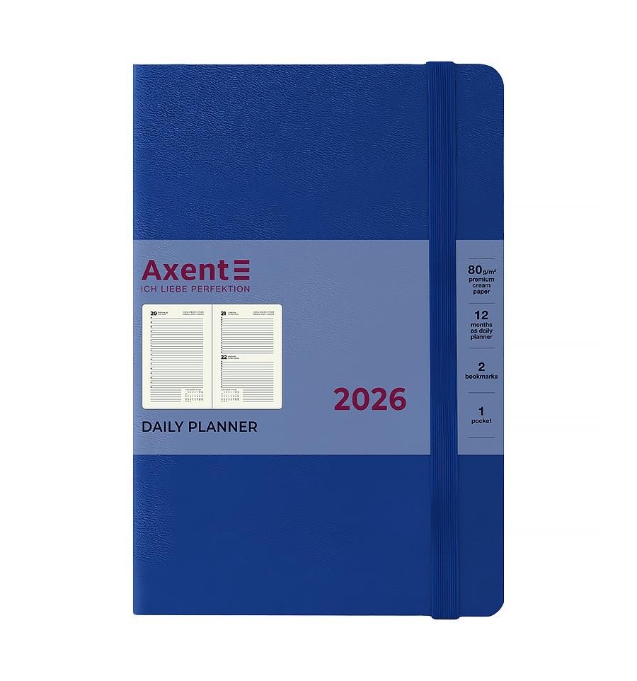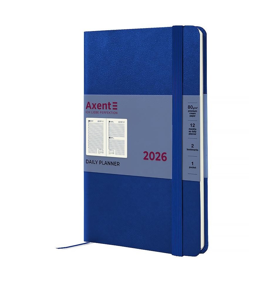 Удобный дневник Axent из серии Partner Strong в жесткой обложке. Используется для ежедневных записей, деловых и творческих задач.Твердый переплет помогает сохранить аккуратный и презентабельный вид в течение длительного времени. Качественная кремовая бумага плотностью 80 г/м2 хорошо впитывает чернила и обеспечивает комфортное письмо. Удобно делать записи, чертить и рисовать. Ежедневник имеет датированный блок в линию на каждый день.Внутренний блок на украинском языке. Дневник содержит календарь на 2026-2027 год, общее недельное расписание, информацию о праздниках, важные номера телефонов, часовые пояса стран мира, единицы измерения, шкалу температур.Две разноцветные закладки-ляссе позволяют быстро найти и открыть нужные страницы. Содержит 168 листов, размер – 145*210 мм. Петли для ручки нет. Карман на форзаце.