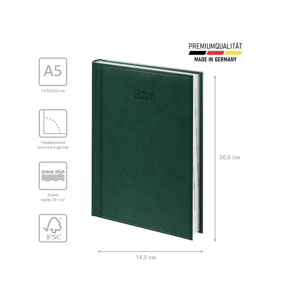 Дневник дат. 2026 Стандарт Torino А5, 73-795 38 506, зеленый
