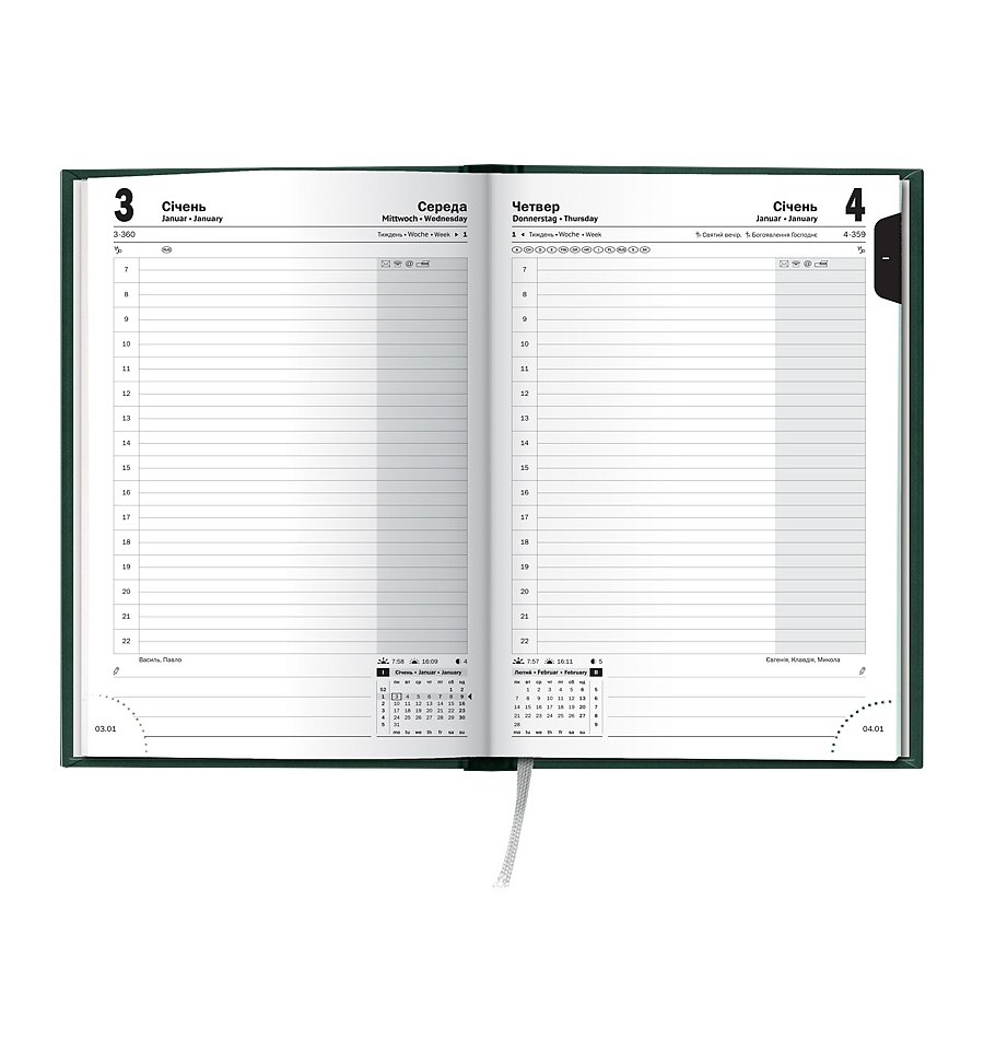 Датированный дневник BRUNNEN 2026 Стандарт – стильная классическая модель. Оптимизированное пространство для записей и удобная навигация. Особенности: Три языка: украинский, английский, немецкий. Общее количество страниц – 336. Одна страница – один день. Организатор времени с 07:00 до 22:00. Качественная печать в сером цвете. 4 страницы для общей планировки в год. Расширенный информационный блок. Белая европейская бумага 70 г/м2. Закладка-лес и отрывные уголки с датой. Стильная обложка Torino. Слепое тиснение.