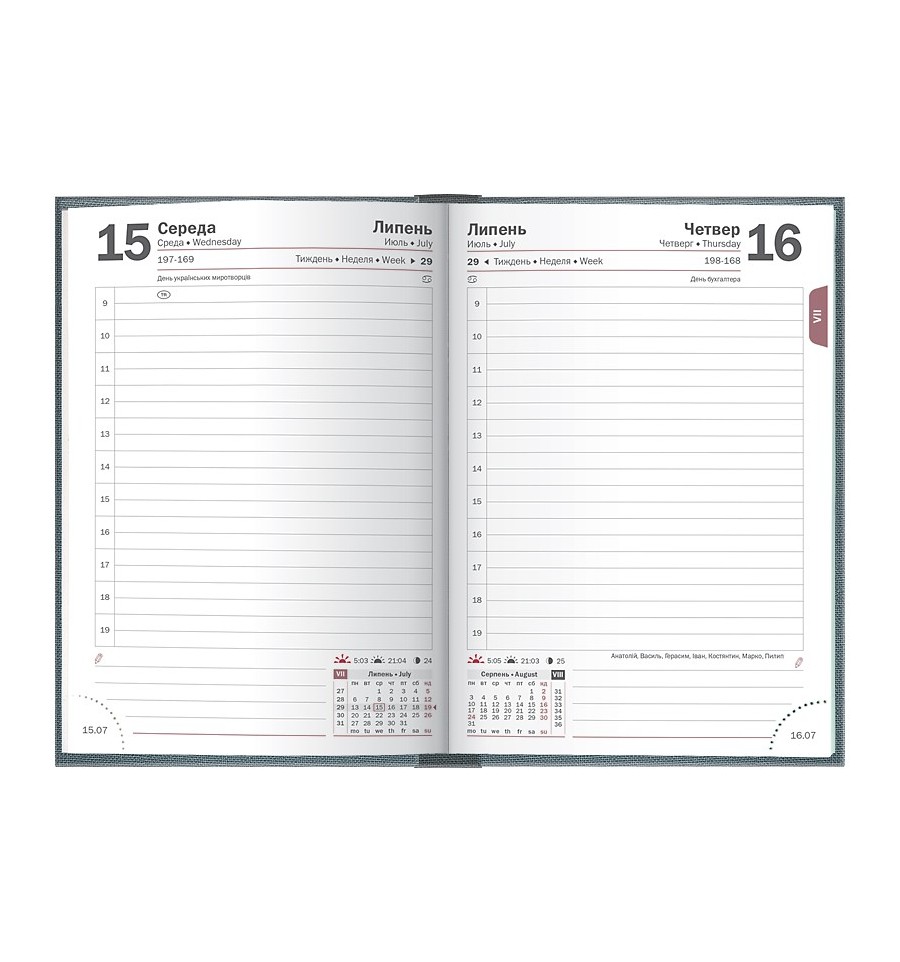 Дневник датированный карманныйный Brunnen 2026 – компактная модель для активных личностей. Гармоничное соединение консервативного внутреннего блока и стильной обложки. Компактный формат А6. Три языка: украинский, английский, немецкий. Кремовые форзацы. 1 страница – 1 день. Суббота и воскресенье на одной странице. Организатор с 09:00 до 19:00. Информационный блок Перфорированные датированные уголки. Качественная печать в сером цвете. Страницы общей планировки в месяц. Календари на 2026 и 2027 гг. Белая бумага 70 г/м². Отрывные странички с перфорацией для записей. Переплет Linesse. Золотое тиснение.