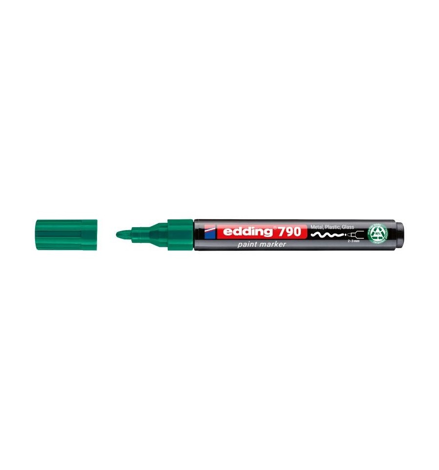 Лаковый маркер edding 790 обеспечивает четкую, устойчивую маркировку даже на темных поверхностях. Благодаря густым чернилам с высокой укрывистостью и округлому наконечнику (2–3 мм), он подходит для точного нанесения. Пишет на таких материалах, как: металл, пластик, стекло, сухая древесина, картон, кожа, лакированные поверхности. Маркер обеспечивает долговечное и броское покрытие при использовании как в помещениях, так и на улице. След маркера является влаго-, износо-, свето- и термостойким. Благодаря качественным чернилам на спиртовой основе, следует маркер быстро высыхает и не размазывается. Идеален для производств, мастерских и бытовых задач. Чернила практически не имеют запаха, не содержат толуола и ксилола. Изготовлен в Германии.