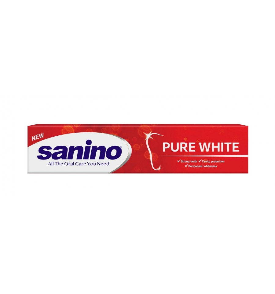 Зубная паста Sanino Pure white 0,075л. Зубная паста Sanino Pure White представляет собой продукт, идеально подходящий для обеспечения защиты полости рта в течение всего дня. Эта паста специально разработана для поддержания и сохранения естественного белья зубов. Состав: кальция карбонат, вода, сорбит, гидратированный диоксид кремния, ПЭ, монофторфосфат натрия, целлюлозная камедь, ароматизатор, сахарин натрия, ментол, масло мяты перечной, масло эвкалипта шаровидного, анетол, масло листьев мяты колосовидной, лимонен, карвон до +1825°С. гериметически закрытой упаковке в сухом помещении при отсутствии прямого солнечного света. Производитель: Evyap Sabun Yağ Gliserin Sanayi ve Ticaret. Адрес производителя: Гюдери джад. Масса нетто:130г.