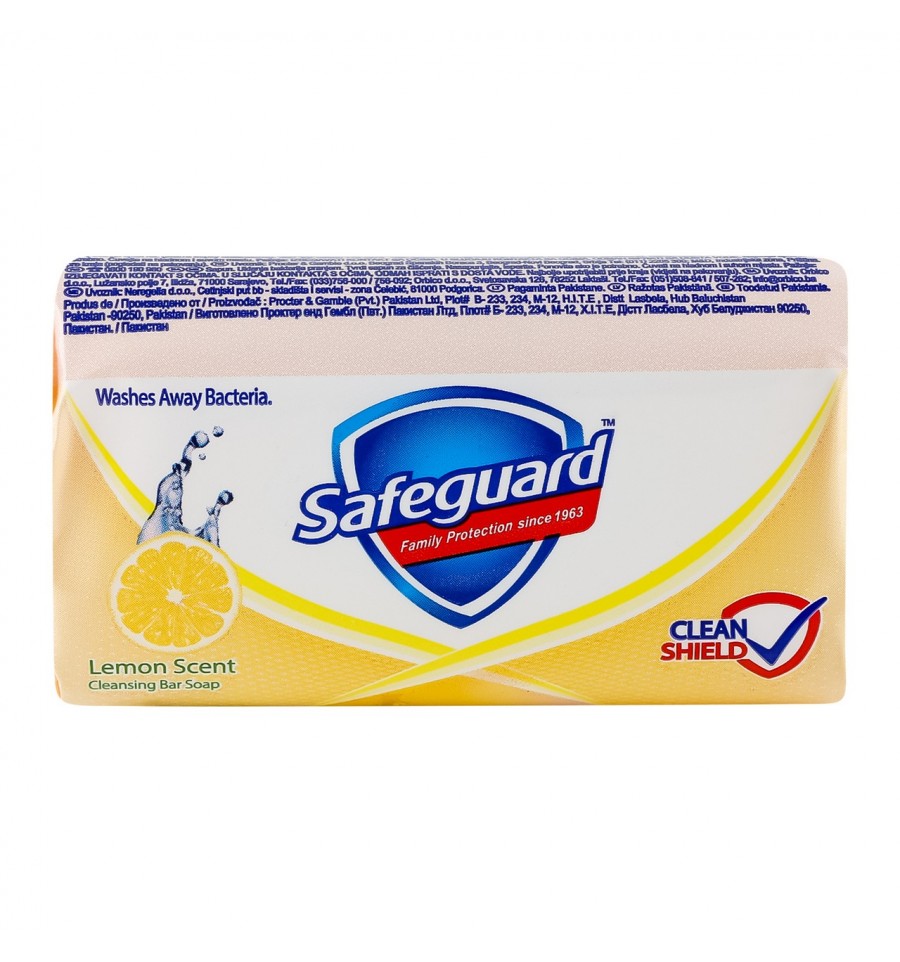 Мило туалетне Safeguard Lemon Scent 90г. Склад: пальмат натрію, вода, кукурудзяний крохмаль, лаурат натрію, гліцерин, міристат натрію, лауринова кислота, парфум, піроктон оламін, натрію аскорбіл фосфат, лимонна кислота, натрію цитрат, натрію хлорид, тетранатрію ЕДТА, тетранатрію етидронат, лімонен, цитраль, ліналоол, гексил циннамал, гераніол, CI 77891, CI 47005, CI 155015. Умови зберігання: сухе, прохолодне місце. Заходи безпеки: уникати потрапляння в очі. Термін придатності: 30 місяців. Країна виробник: Пакистан. Виробничі потужності та адреса виробничих потужностей: Procter & Gamble (Pvt) Pakistan Ltd, Плот №Б-233, 234, Хуб Белуджистан, Дістт Ласбела, Пакістан, 90250. Імпортер: ТОВ Проктер Енд Гембл Україна. Маса нетто: 90г.