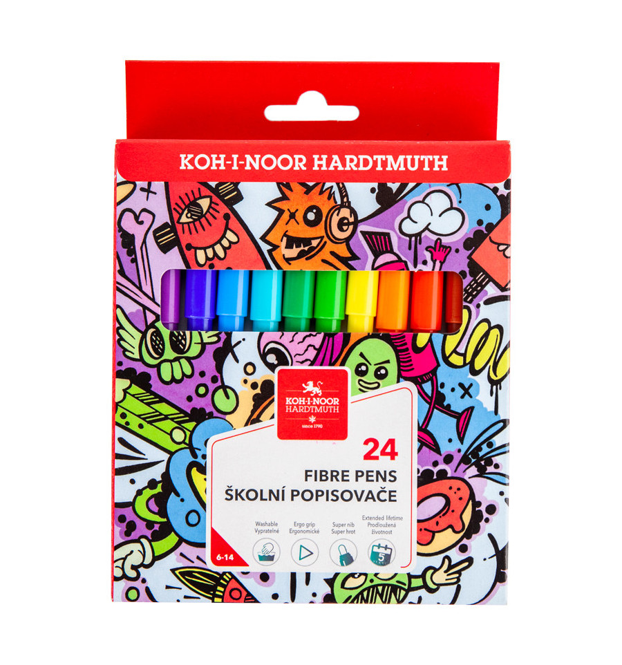 Класичні шкільні фломастери. Волокнистий пишучий вузол залишає яскравий слід, пише м'яко і не дряпає папір. Вентильований ковпачок робить процес малювання безпечним. Відповідають європейському стандарту EN-71. Термін придатності - 5 років.