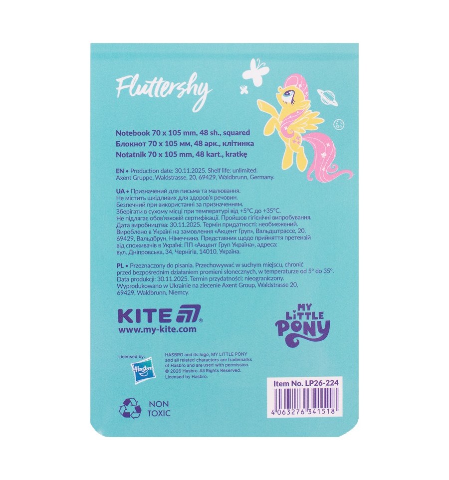 Новий Блокнот Kite My Little Pony LP26-224, 48 аркушів, клітинка