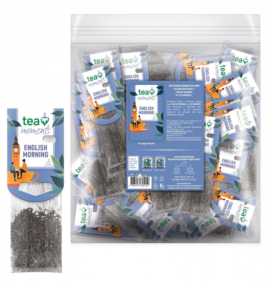 Зустрічайте ранок з класичним чорним чаєм English Morning від Tea Moments, що налаштовує на енергійний старт. Кожен пакетик – це доза справжньої бадьорості, яка наповнює ваш день справжніми емоціями.